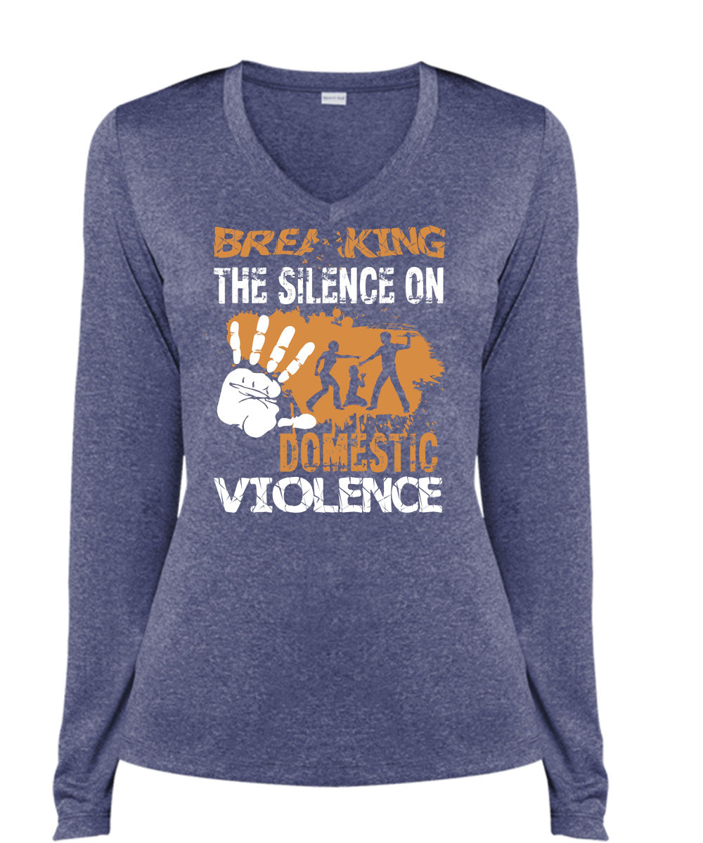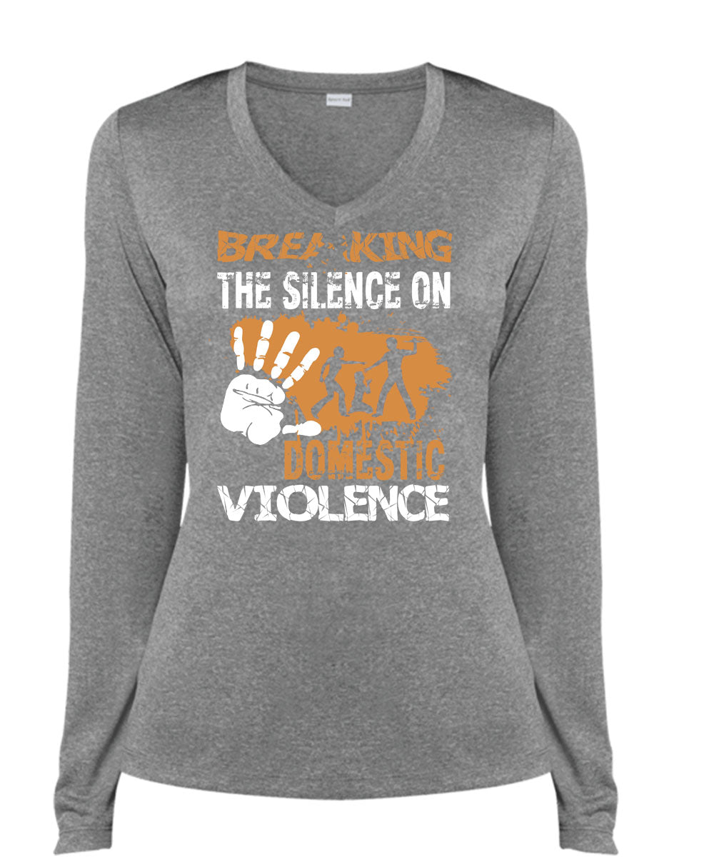 Breaking The Silence On Domestic Violence T Shirt, Being A Papa T Shirt, Cool Shirt (Ladies LS Heather V-Neck)