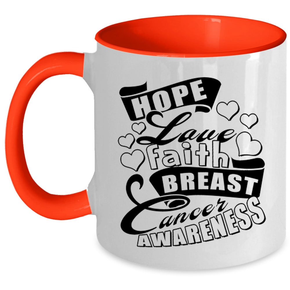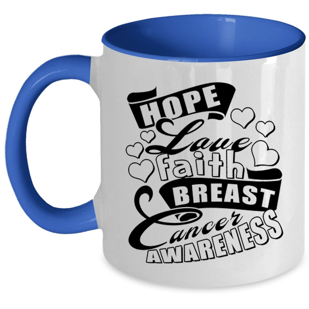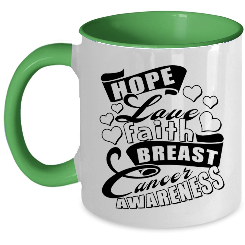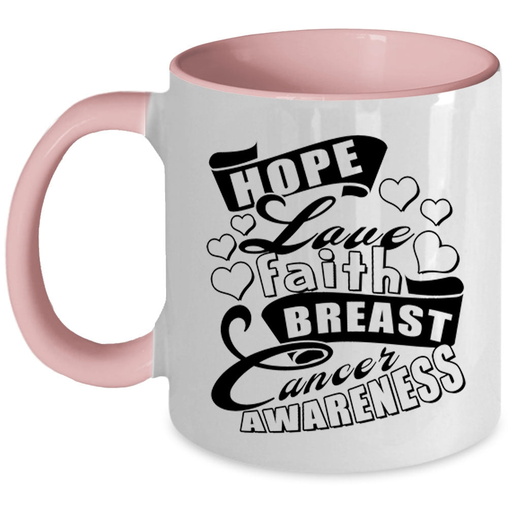 Breast Cancer Awareness Coffee Mug, Hope Love Faith Accent Mug