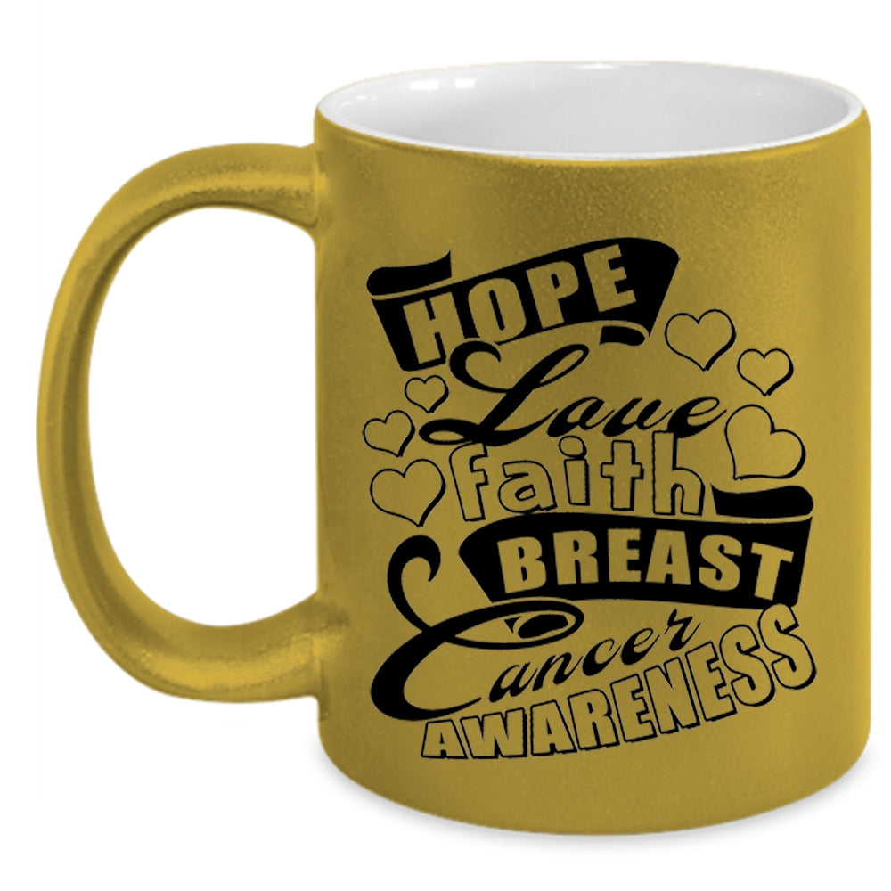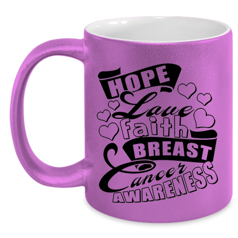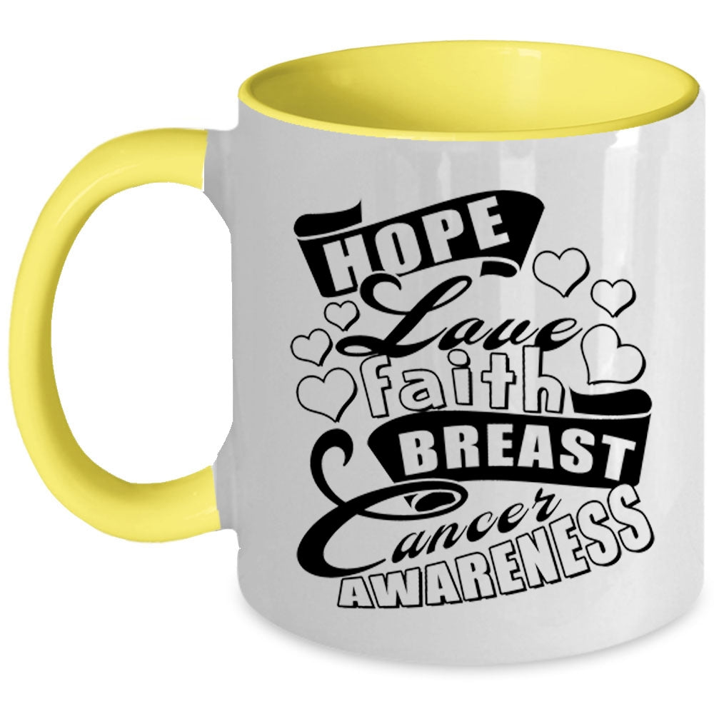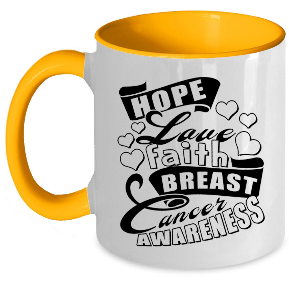 Breast Cancer Awareness Coffee Mug, Hope Love Faith Accent Mug