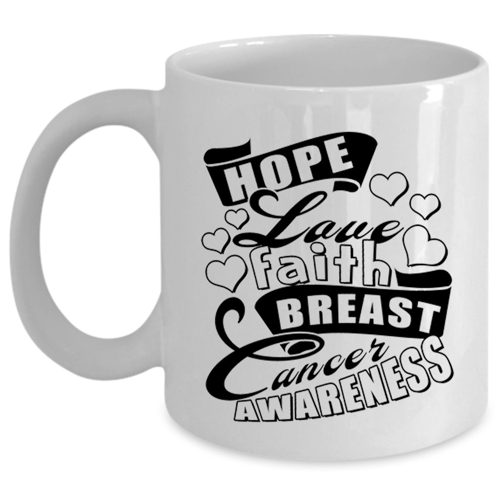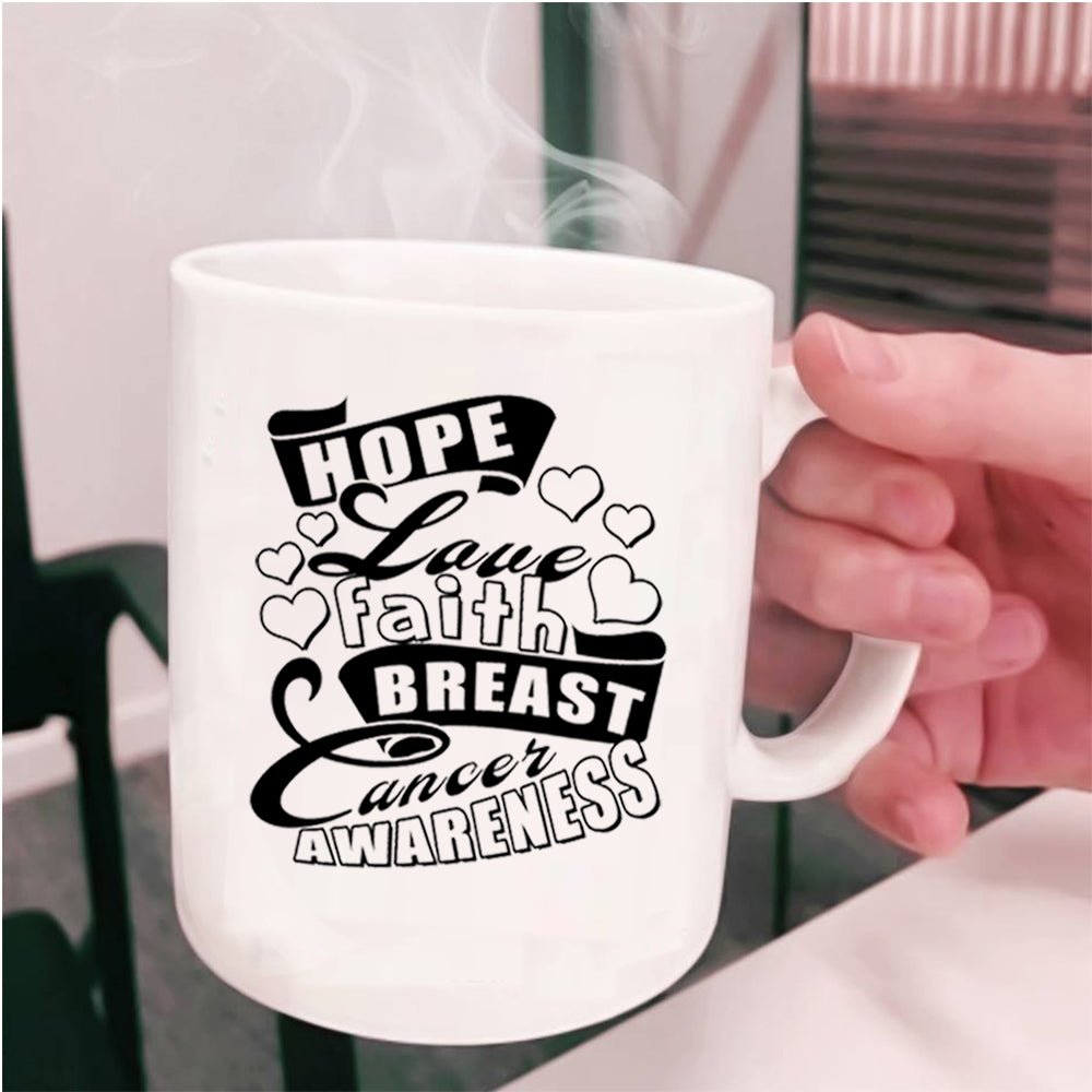 Breast Cancer Awareness Coffee Mug, Hope Love Faith Cup