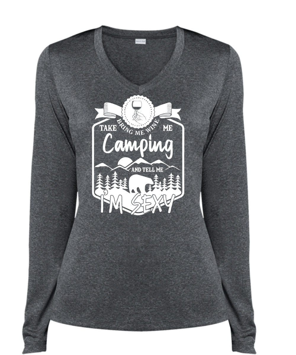 Bring Me Wine Take Me Camping T Shirt, Being A Camper T Shirt, Cool Shirt (Ladies LS Heather V-Neck)