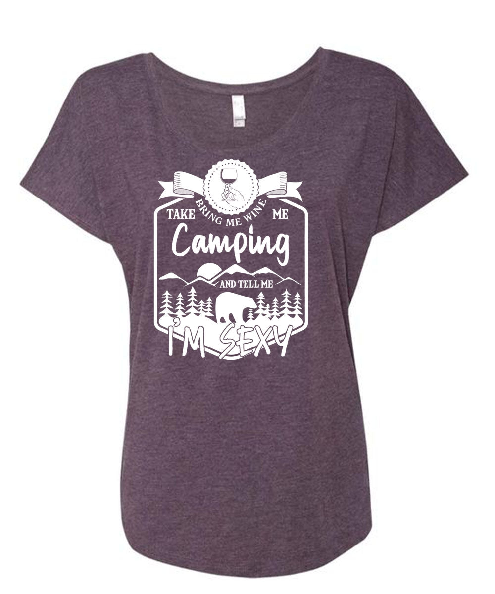 Bring Me Wine Take Me Camping T Shirt, Being A Camper T Shirt, Cool Shirt (Ladies' Triblend Dolman Sleeve)