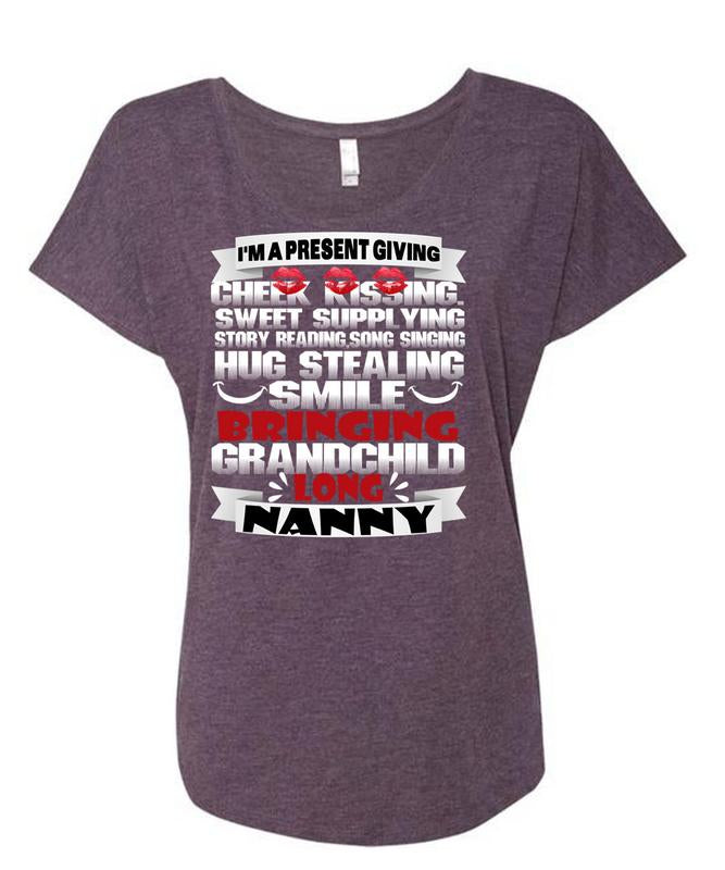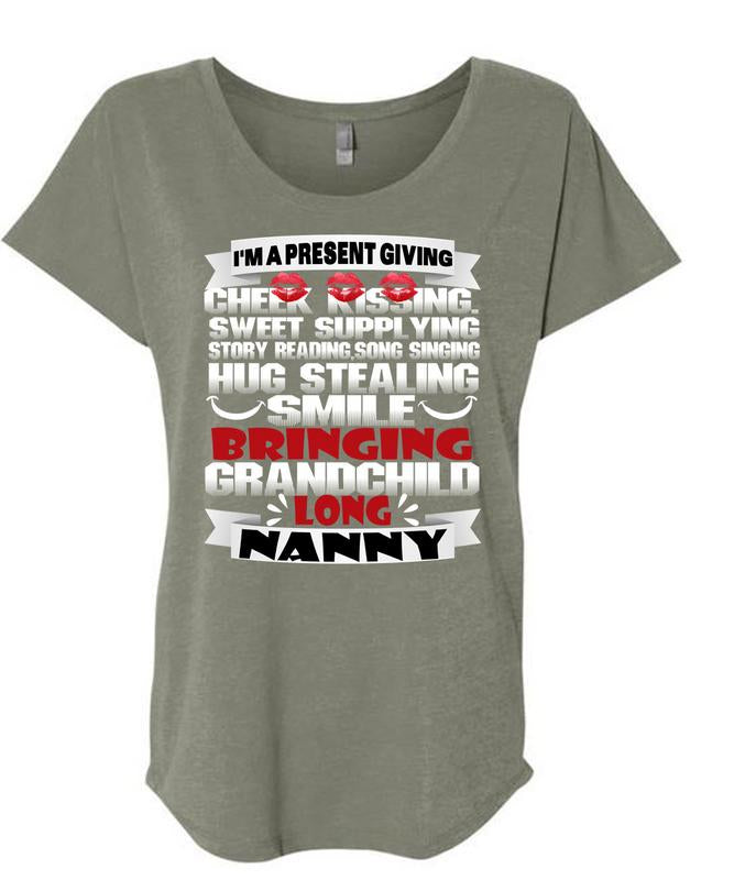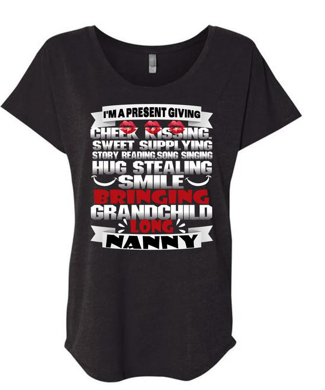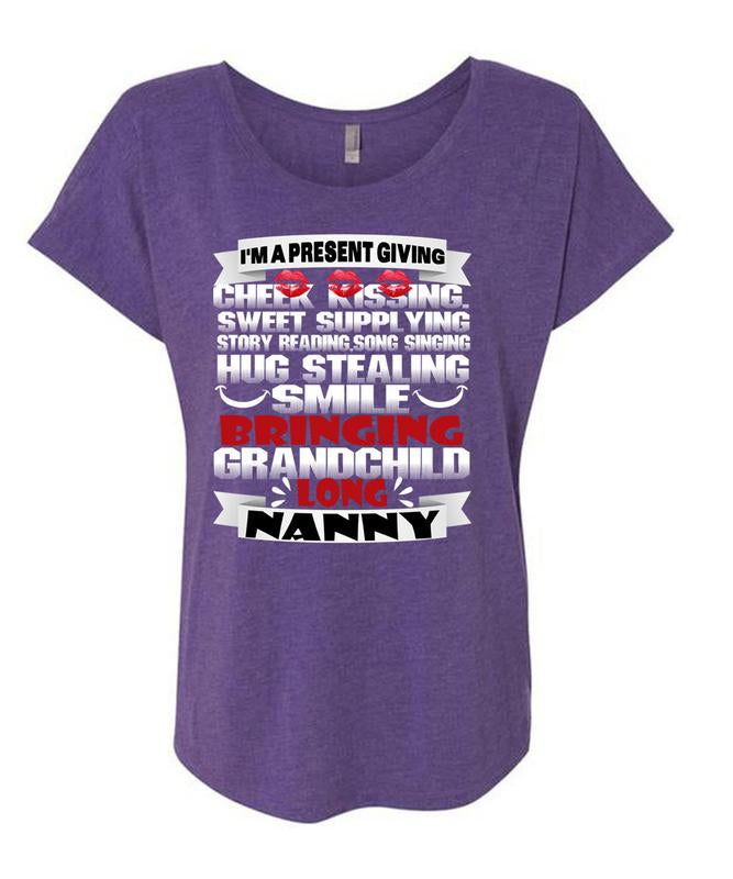 Bringing Grandchild Long Nanny T Shirt, Hug Stealing Smile T Shirt, Cool Shirt (Ladies' Triblend Dolman Sleeve)