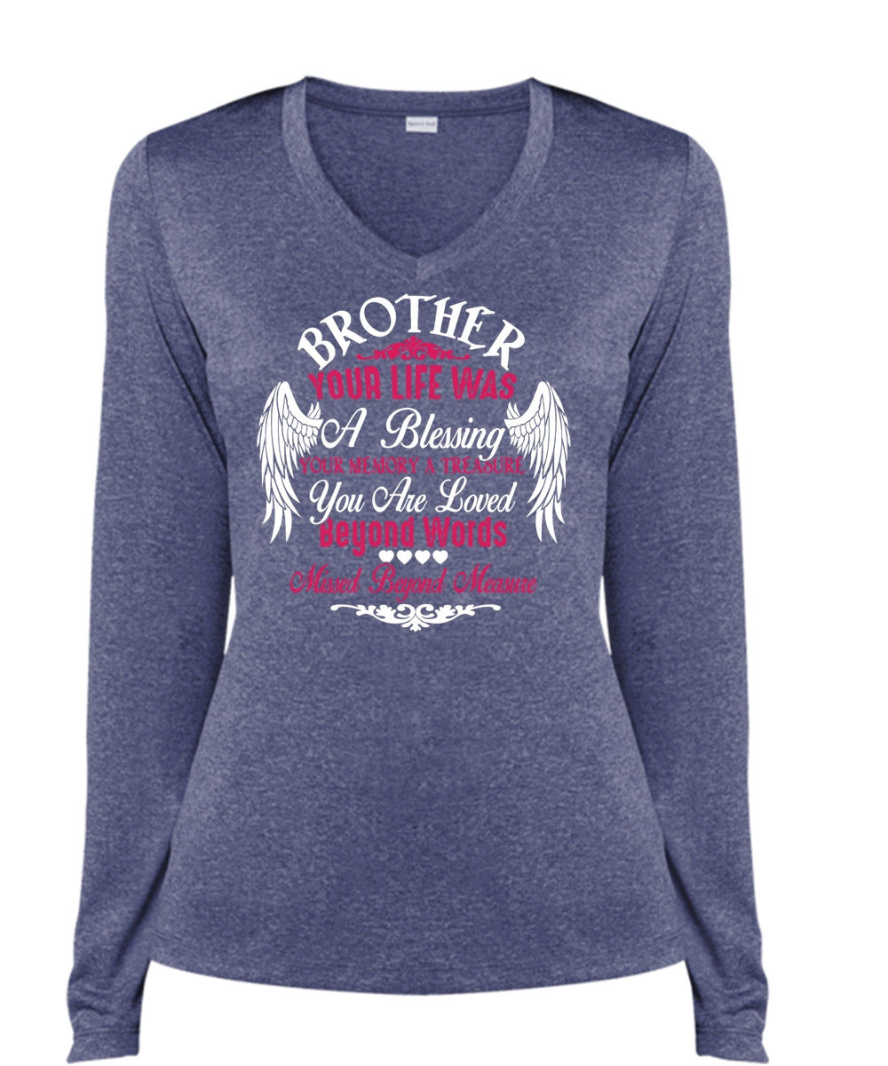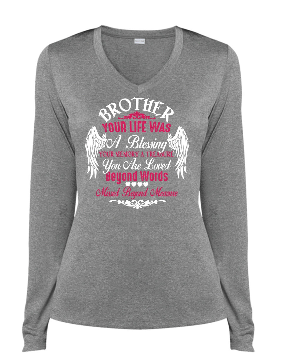 Brother Your Life Was A Blessing T Shirt, You Are Loved Beyond Words T Shirt (Ladies LS Heather V-Neck)