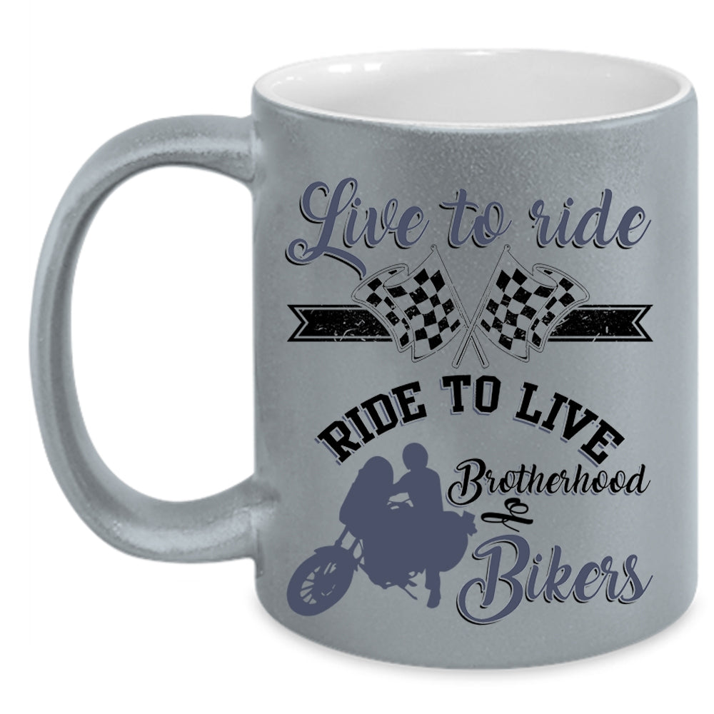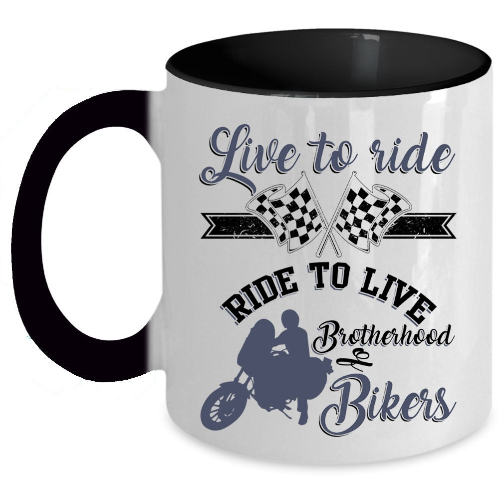 Brotherhood Of Bikers Coffee Mug, Live To Ride Ride To Live Accent Mug