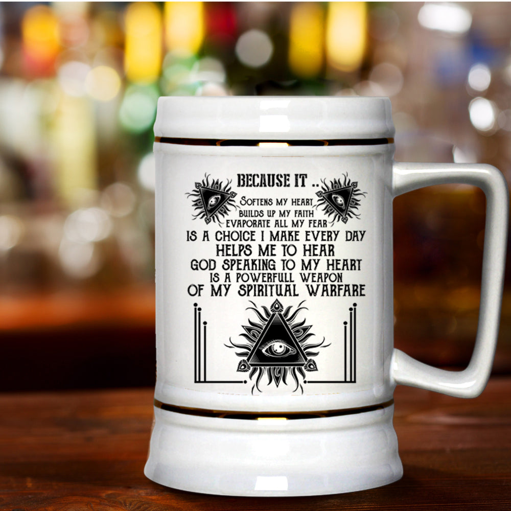Builds Up My Faith Beer Stein 22oz, Softens My Heart Beer Mug