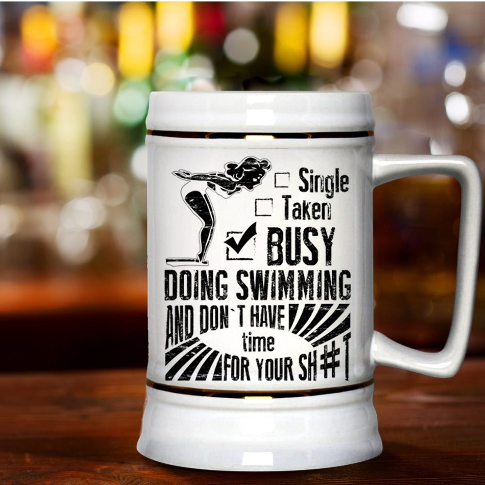 Busy Doing Swimming Beer Stein 22oz, Relationship Status Beer Mug