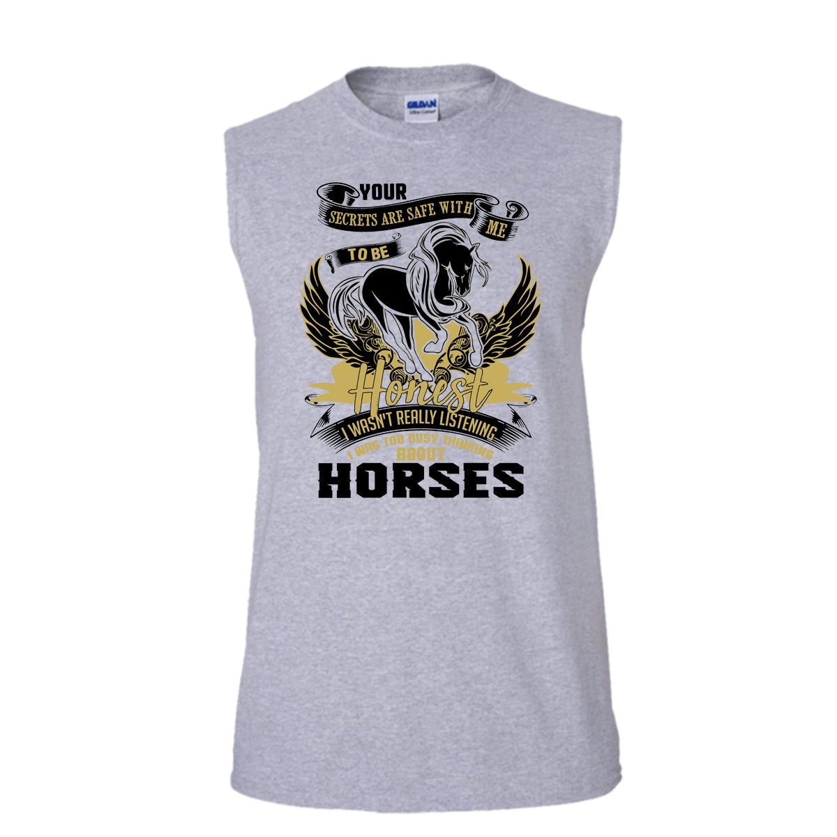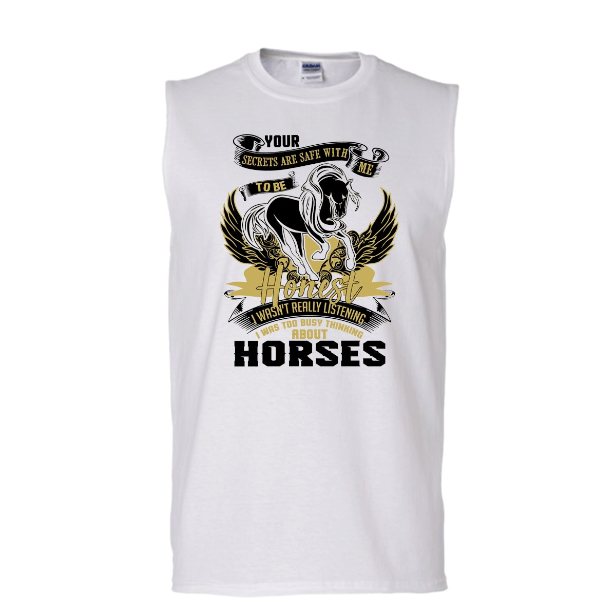 Busy Thinking About Horses T Shirt, Gift For Equestrian T Shirt, Awesome t-shirts (Men's Cotton Sleeveless)