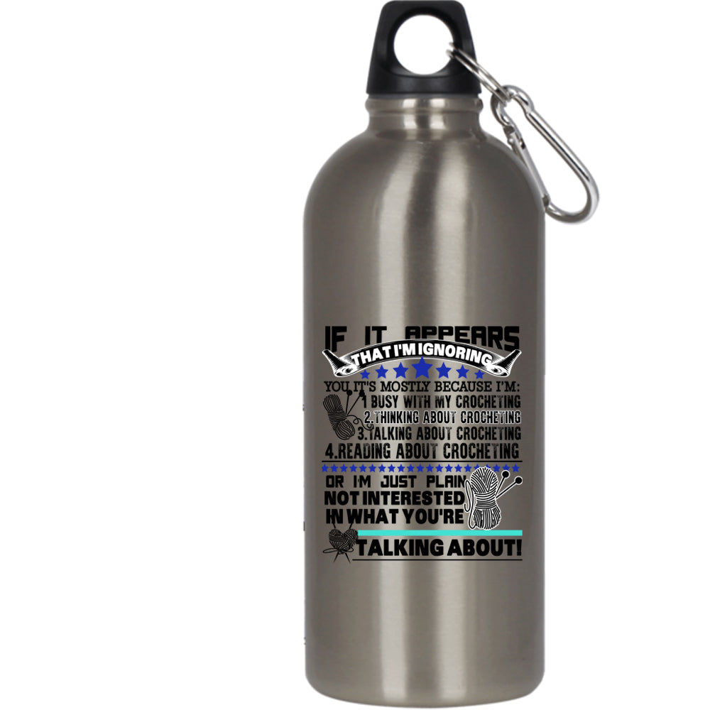 Busy With My Crocheting 20 oz Stainless Steel Bottle,Reading About Crocheting Outdoor Sports Water Bottle