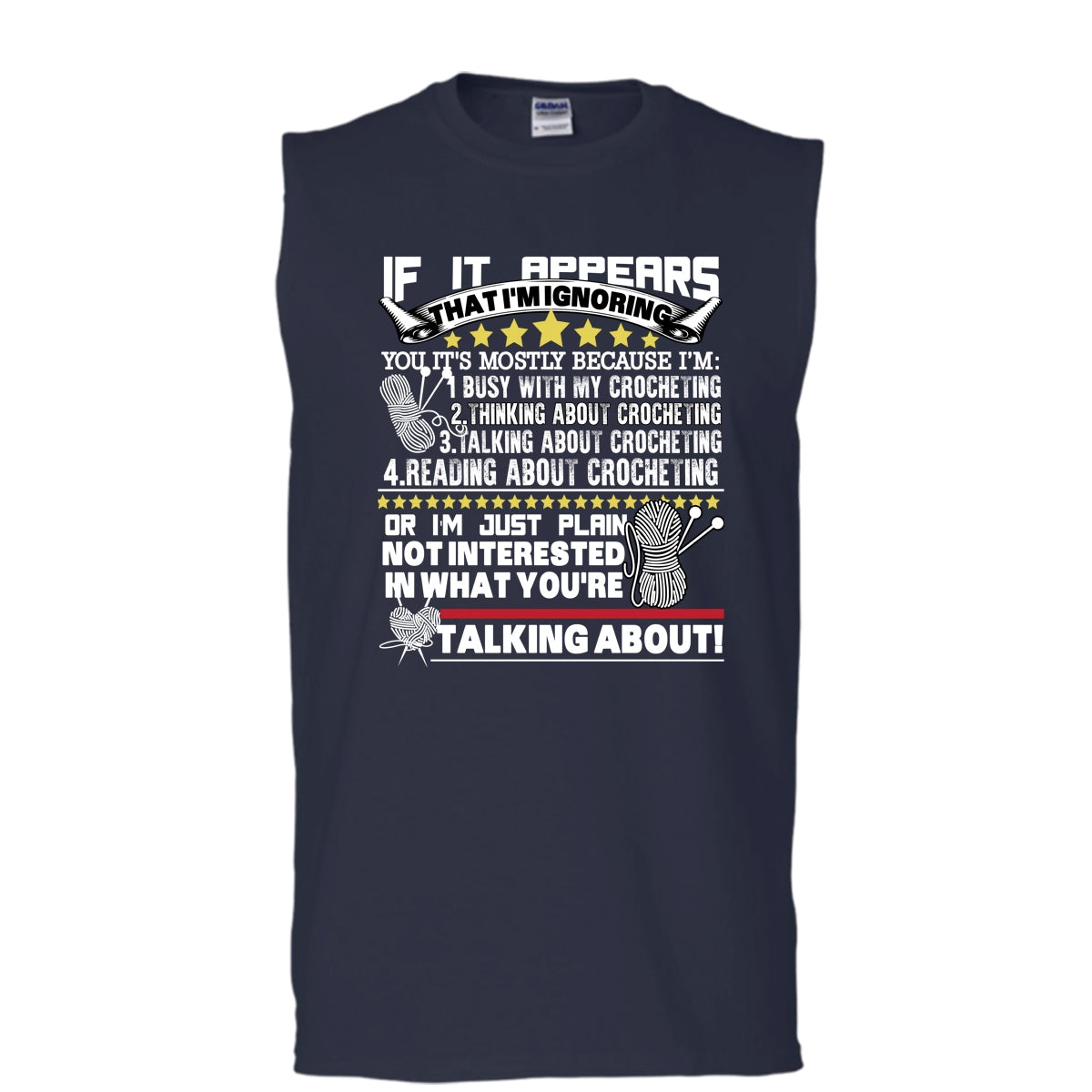 Busy with My Crocheting T Shirt, Thinking About Crocheting T Shirt, Cool T Shirt (Men's Cotton Sleeveless)