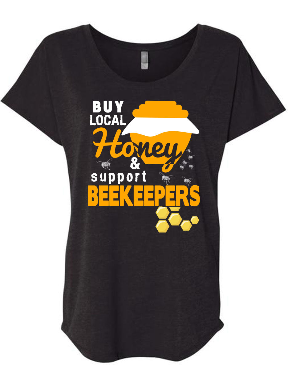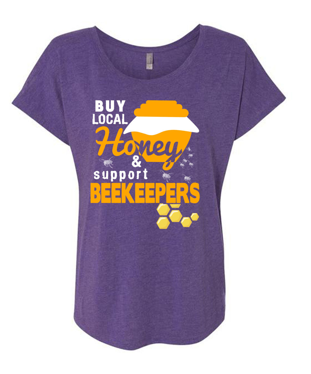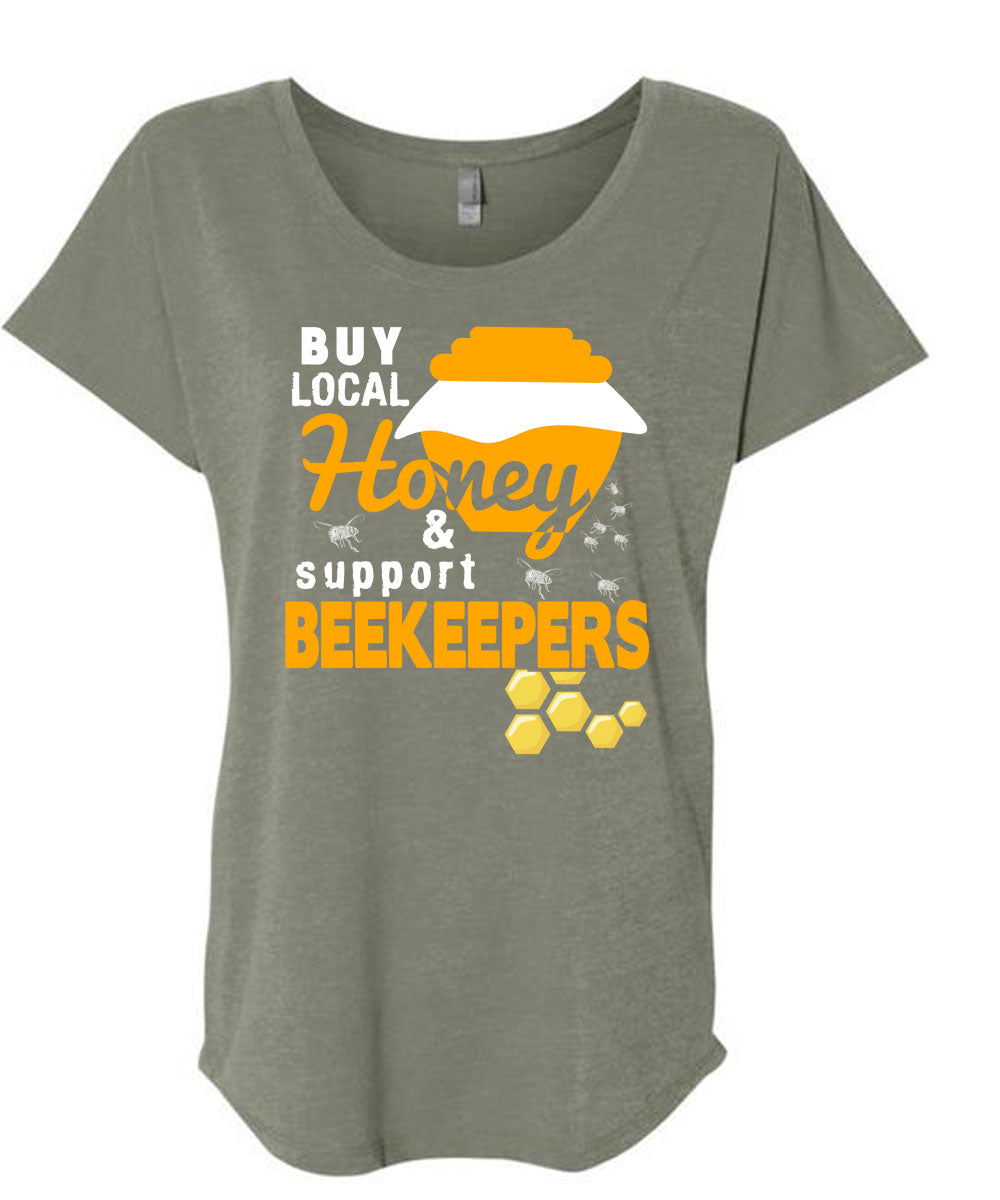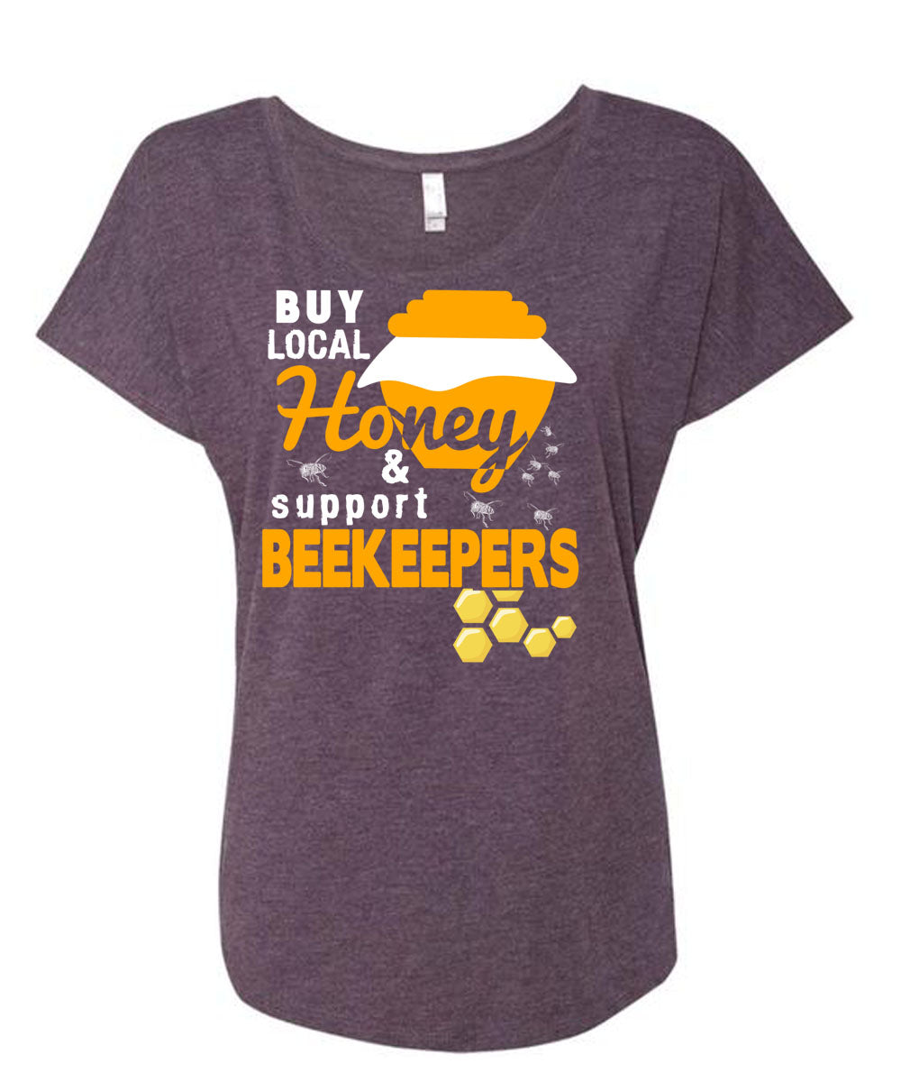 Buy Local Honey T Shirt, Support Beekeepers T Shirt, Cool Shirt (Ladies' Triblend Dolman Sleeve)