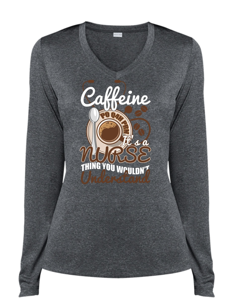 Caffeine It's A Nurse Thing T Shirt, Being A Nurse T Shirt, Cool Shirt (Ladies LS Heather V-Neck)