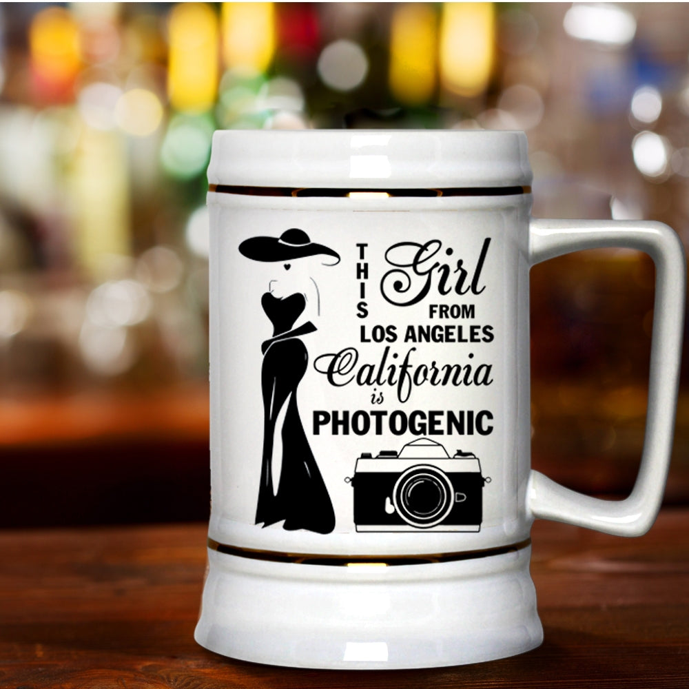 California Is Photogenic Beer Stein 22oz, This Girl From Los Angeles Beer Mug