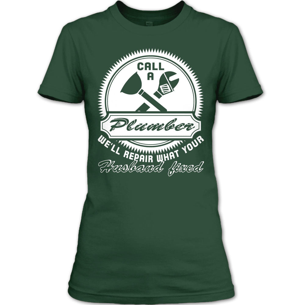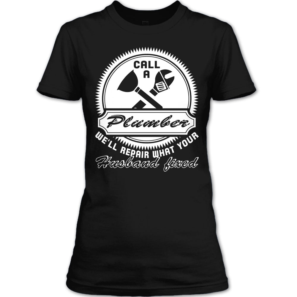 Call A Plumber T Shirt, We'll Repair What Your Husband Fixed T Shirt