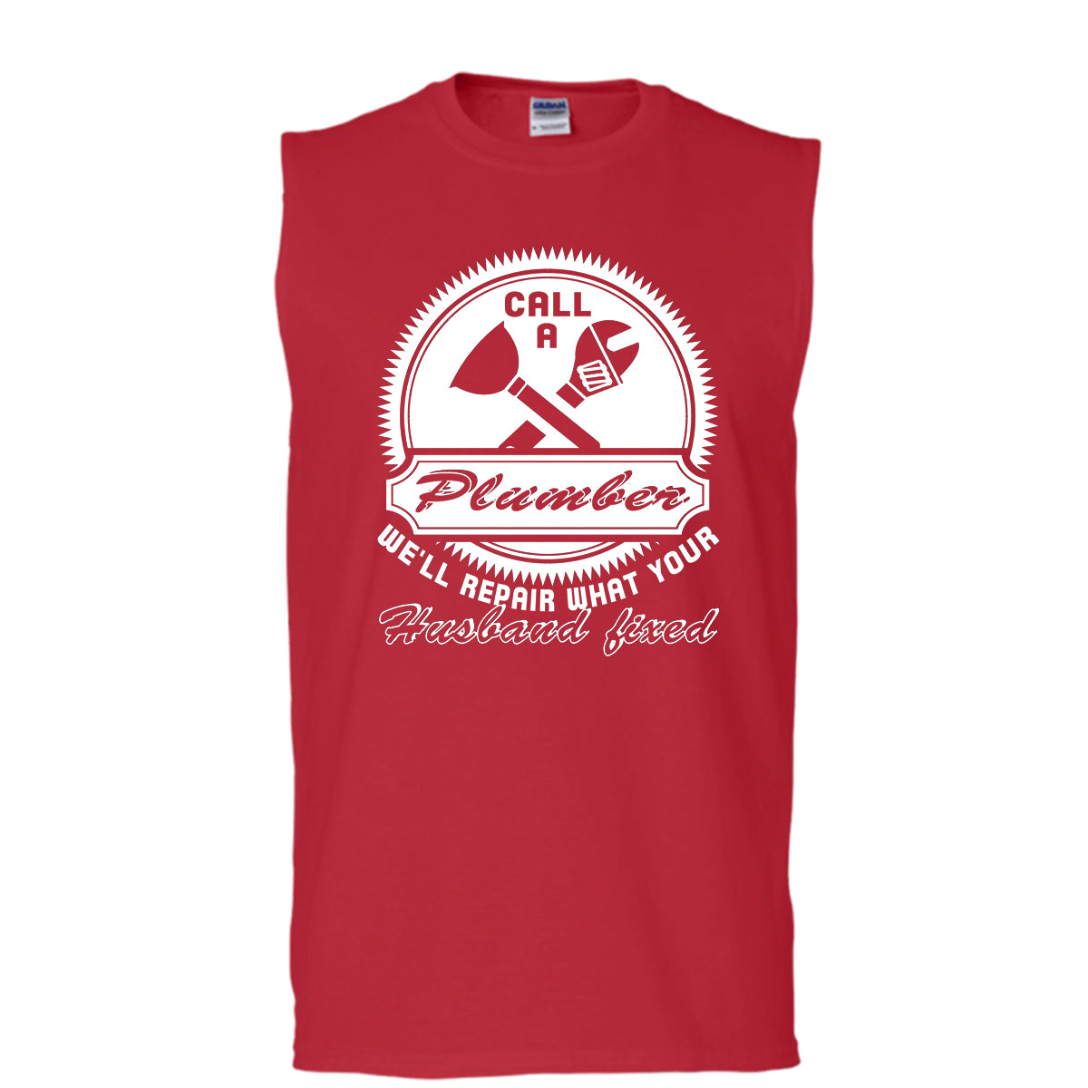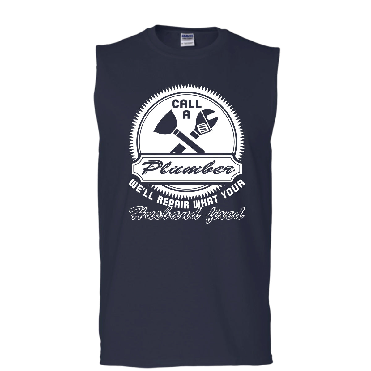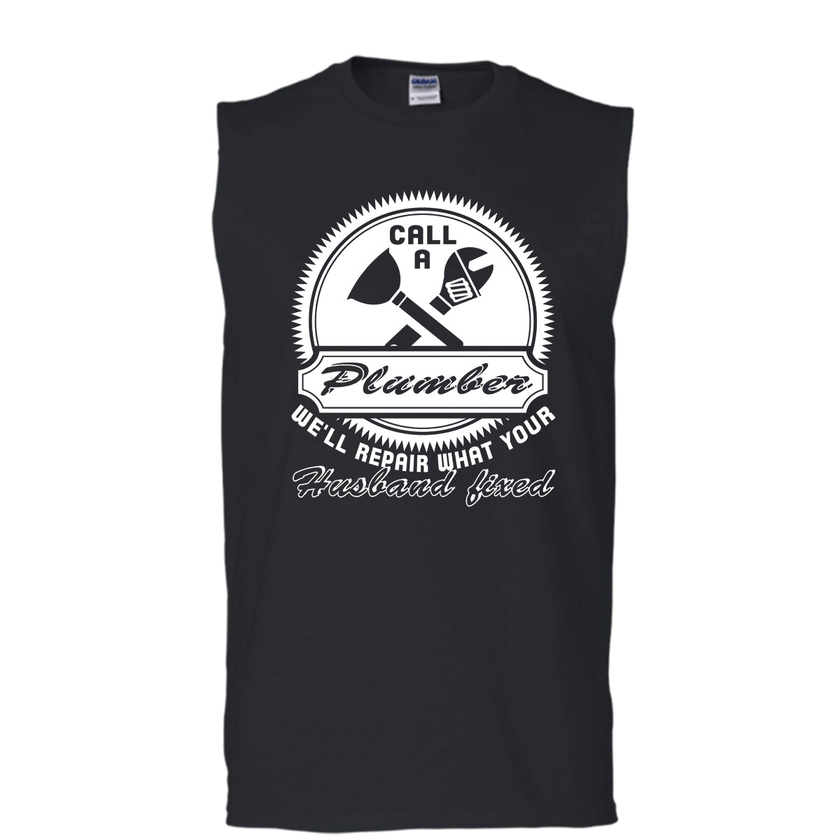 Call A Plumber T Shirt, We'll Repair What Your Husband Fixed T Shirt, Cool T Shirt (Men's Cotton Sleeveless)