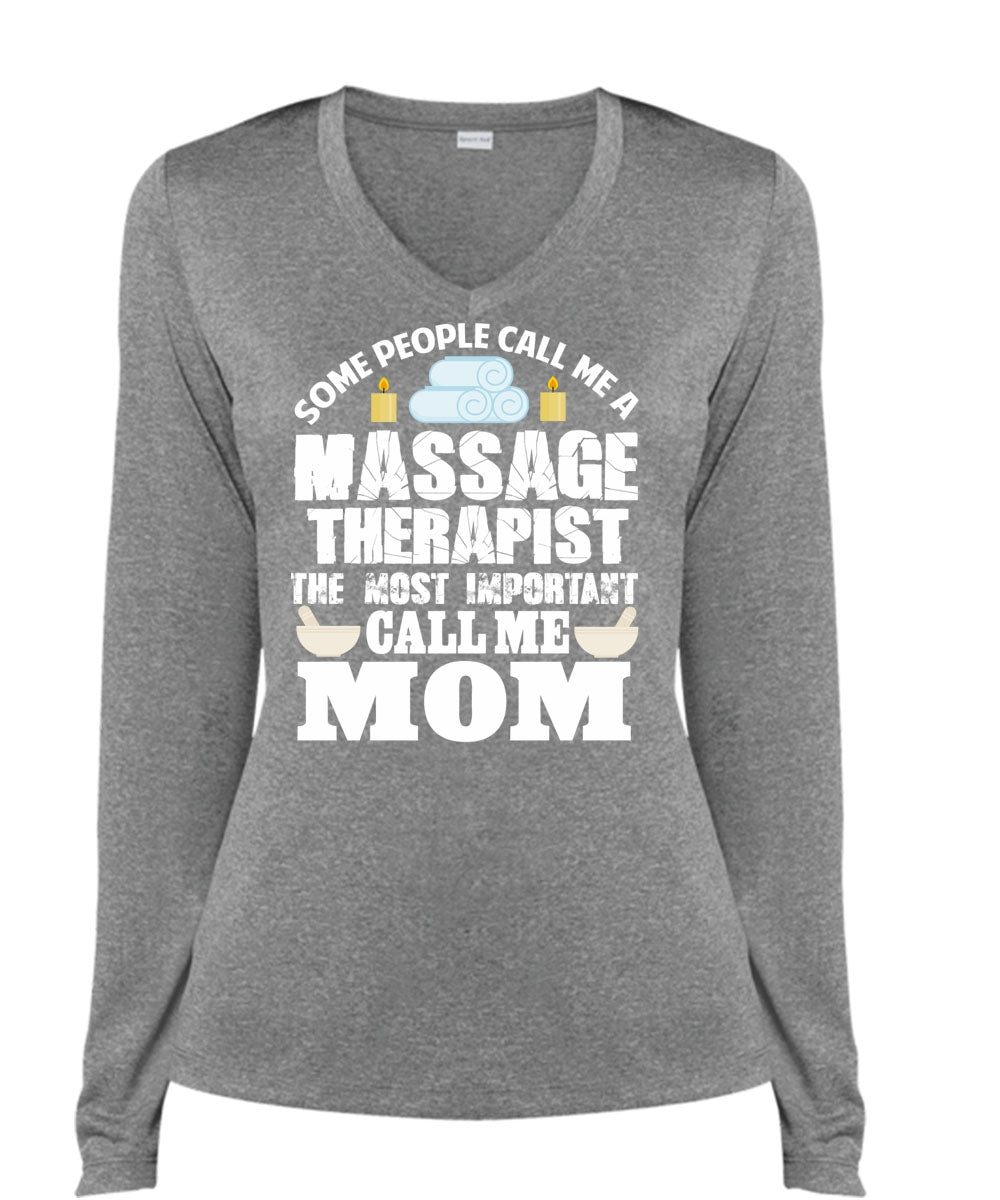 Call Me A Massage Therapist T Shirt, Call Me Mom T Shirt, Cool Shirt (Ladies LS Heather V-Neck)