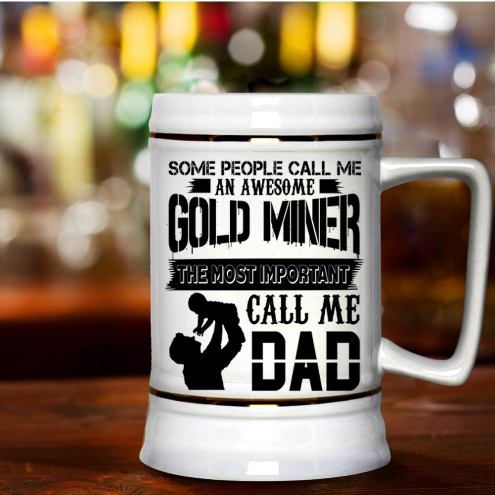 Call Me Dad Beer Stein 22oz, Call Me An Awesome Gold Miner Beer Mug