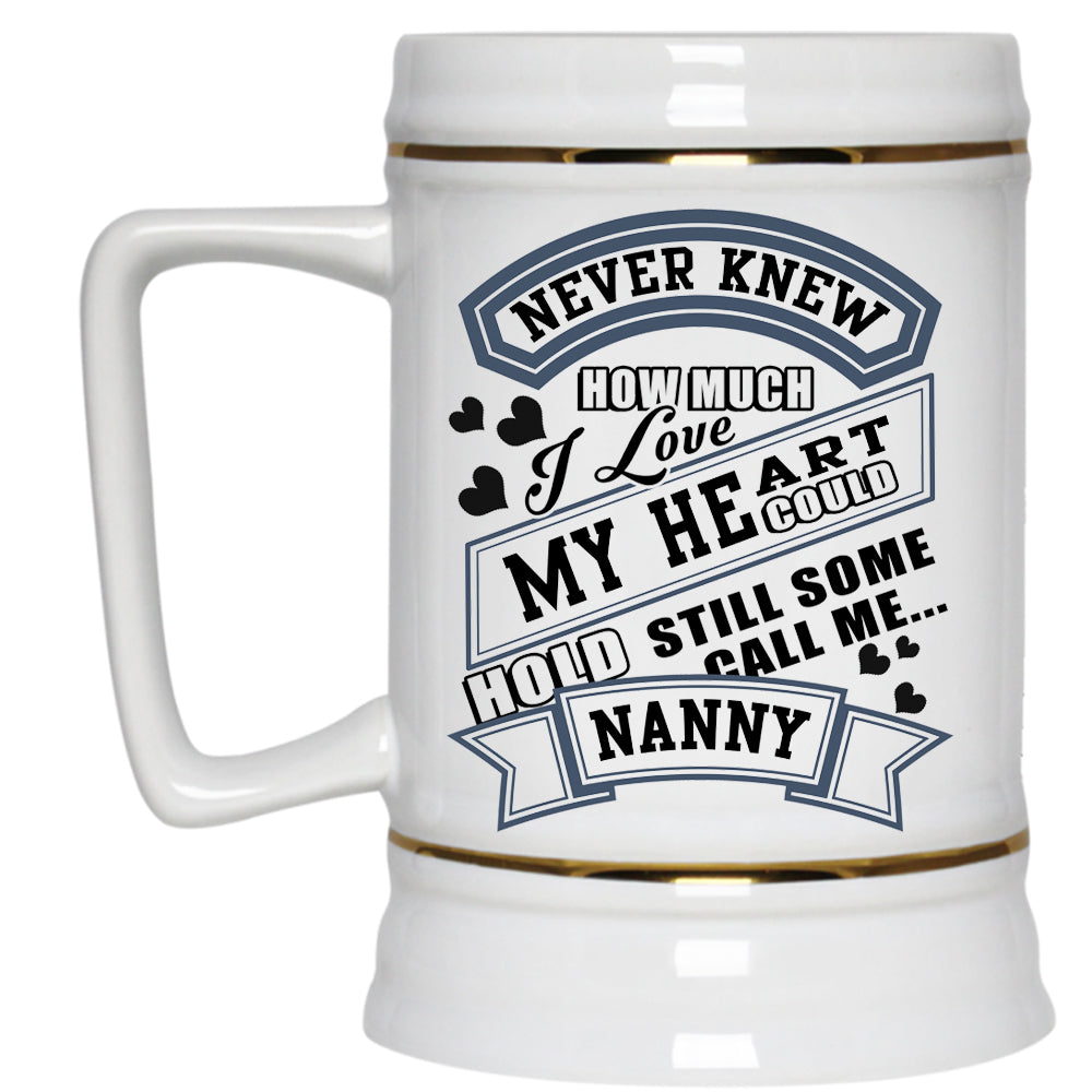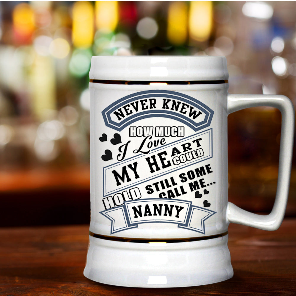Call Me Nanny Beer Stein 22oz, I Love My Heart Beer Mug