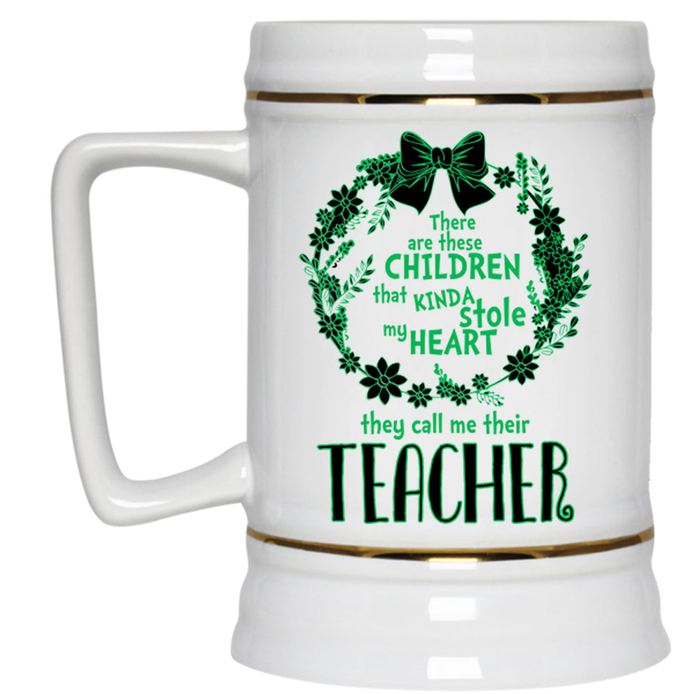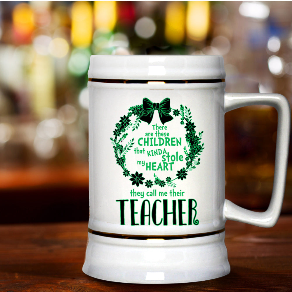 Call Me Teacher Beer Stein 22oz, These Children Kinda Stole My Heart Beer Mug
