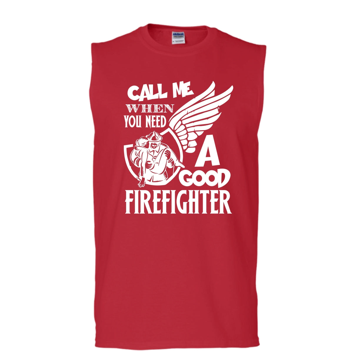 Call Me When You Need T Shirt, A Good Firefighter Tank Top (Men's Cotton Sleeveless)