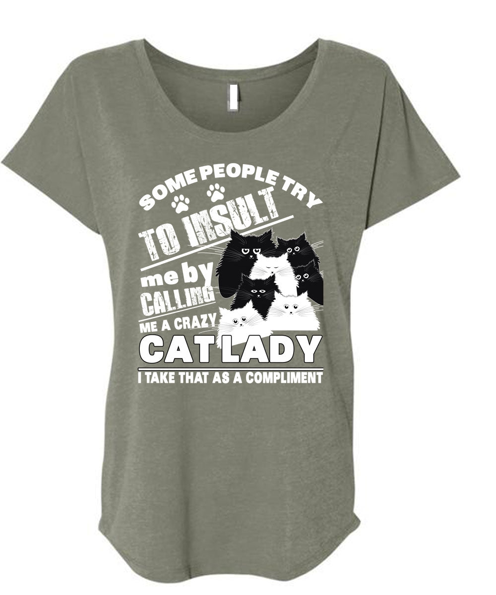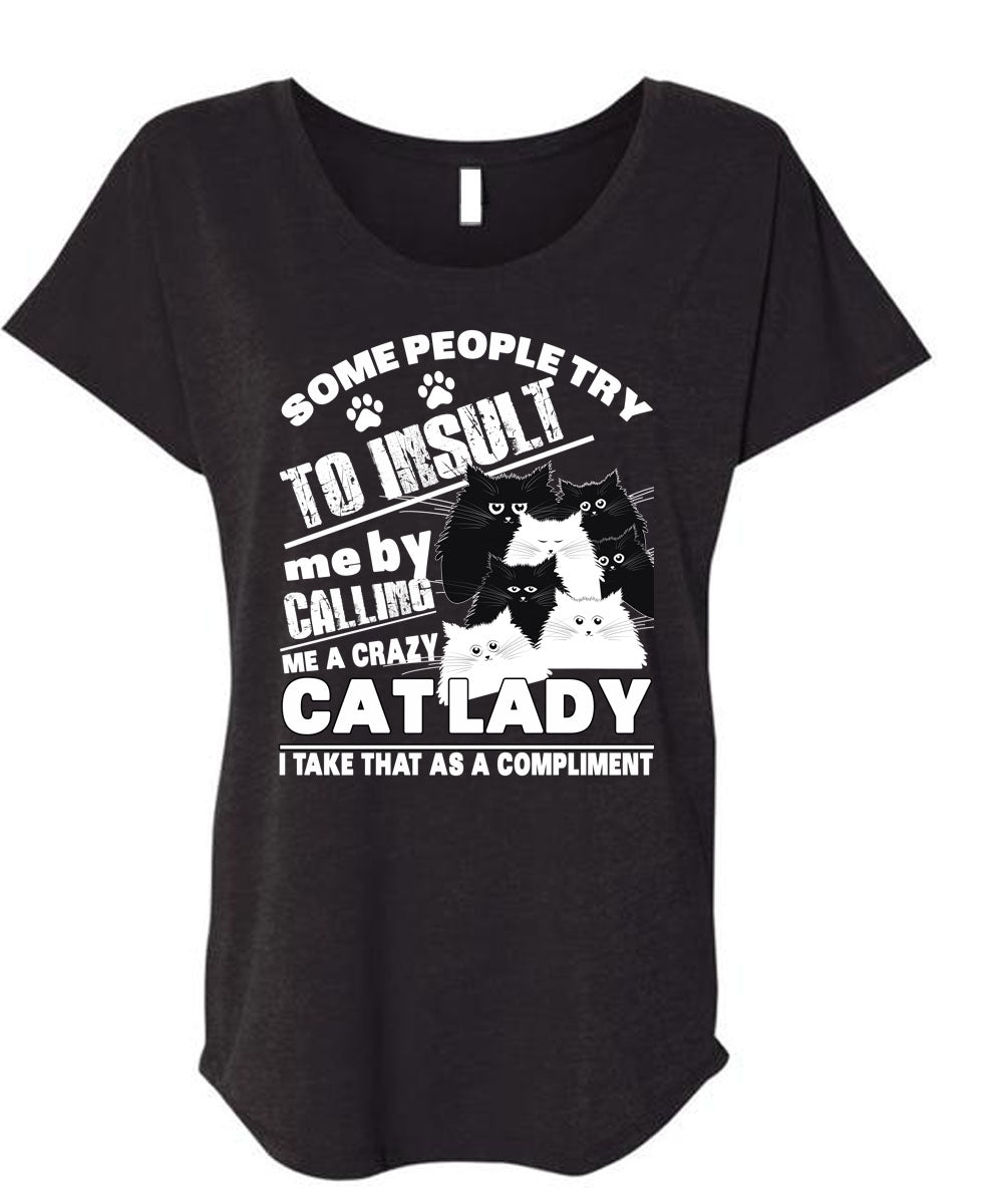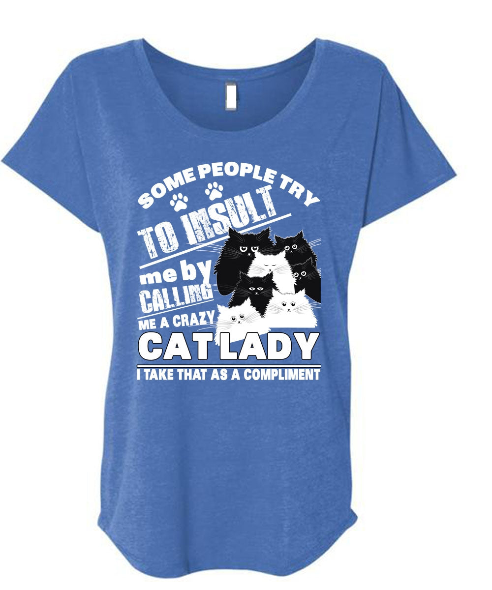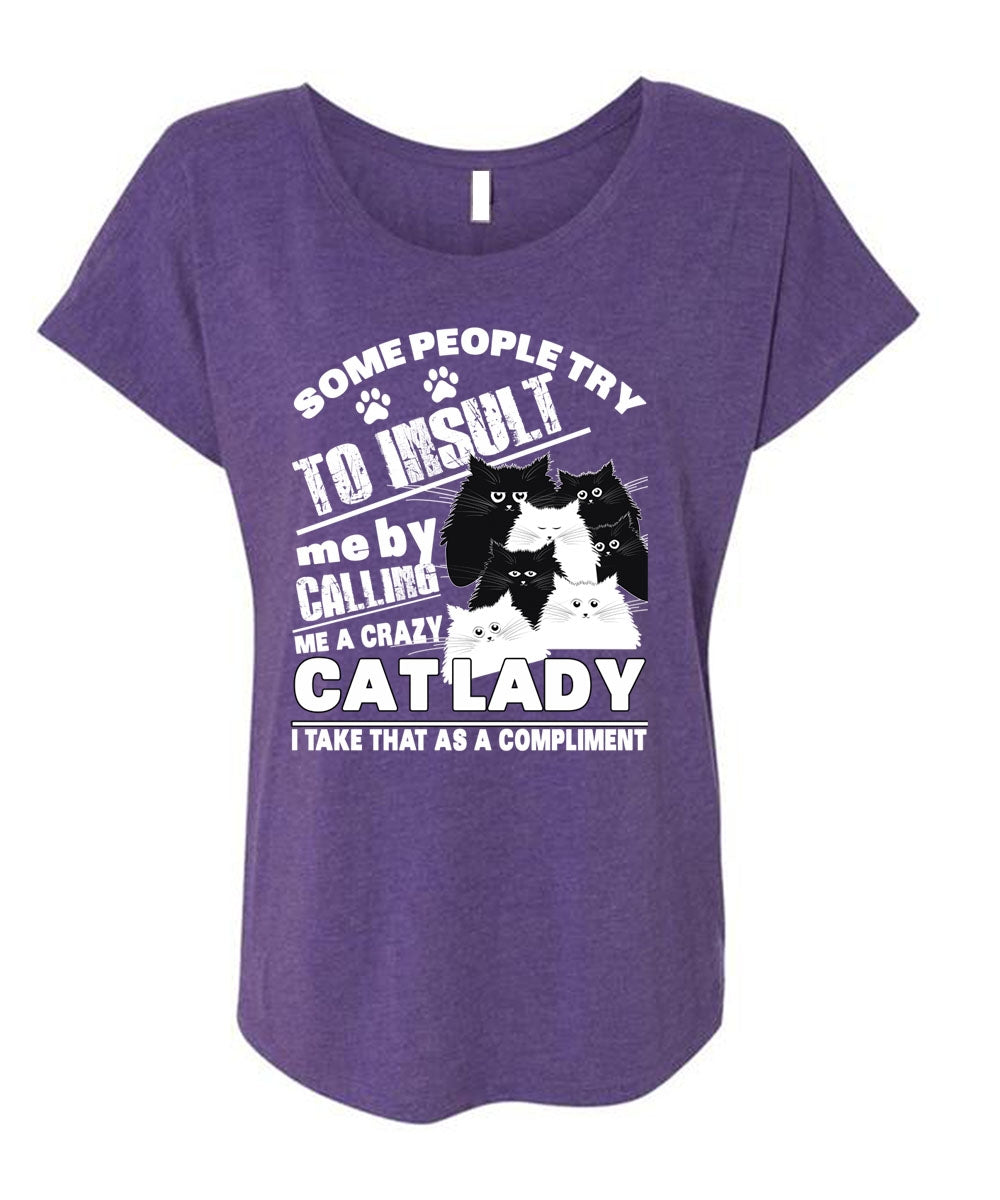 Calling Me A Crazy Cat Lady T Shirt, Some People Try To Insult T Shirt, Cool Shirt (Ladies' Triblend Dolman Sleeve)