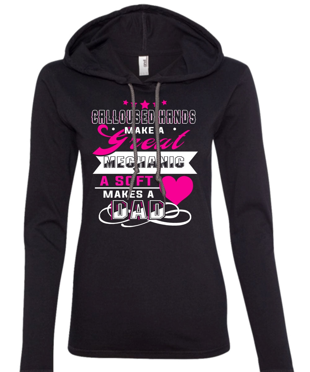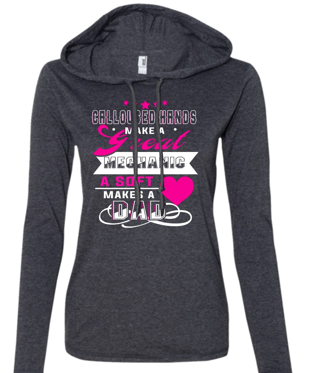 Calloused Hands Make A Great Mechanic A Soft Makes A Dad T Shirt, Life T Shirt (Anvil Ladies Ringspun Hooded)