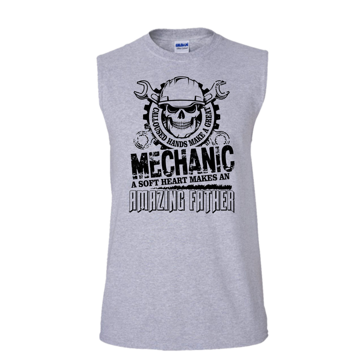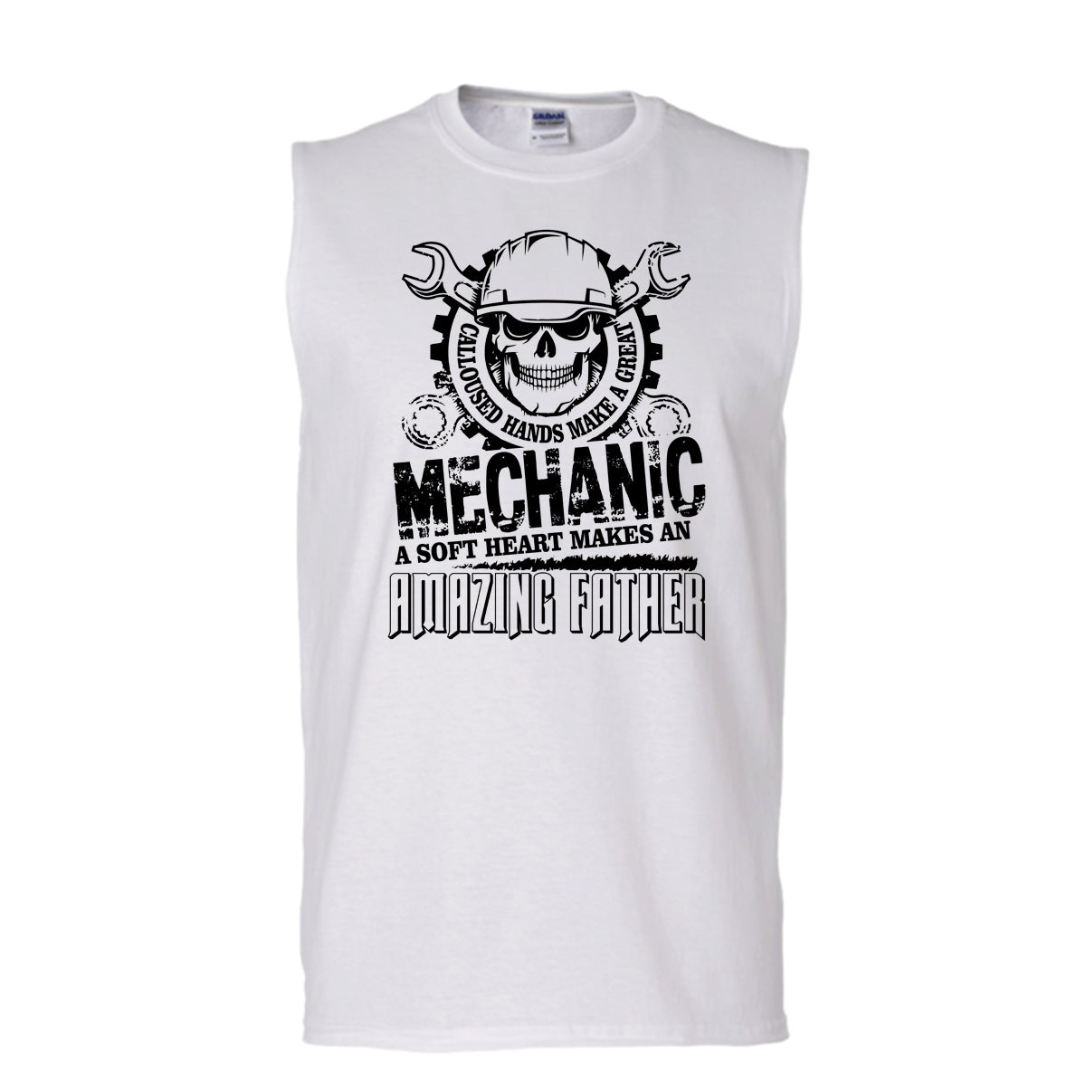 Calloused Hands Make A Great Mechanic T Shirt, Soft Heart Makes An Amazing Father T Shirt, Awesome t-shirts (Men's Cotton Sleeveless)