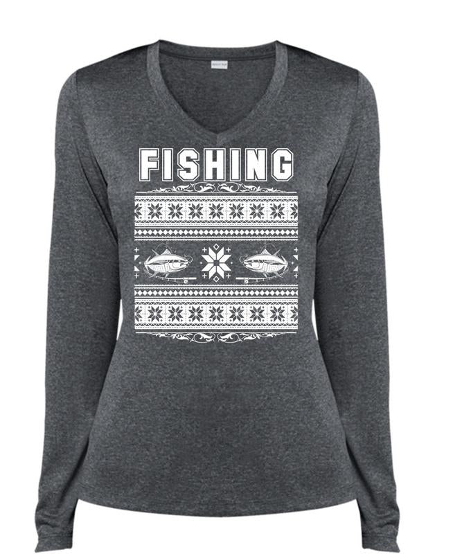 Calls Me A Fisher T Shirt, I Love Fishing T Shirt, Cool Shirt (Ladies LS Heather V-Neck)