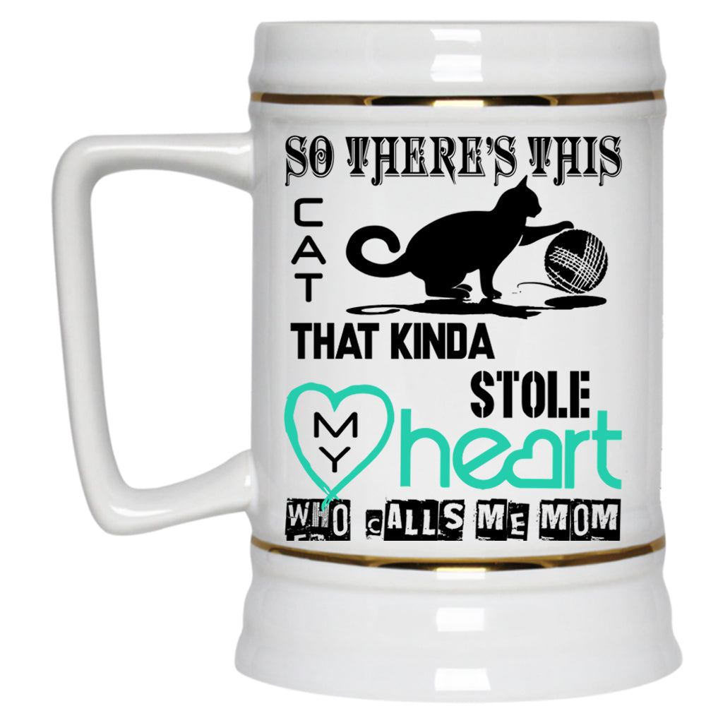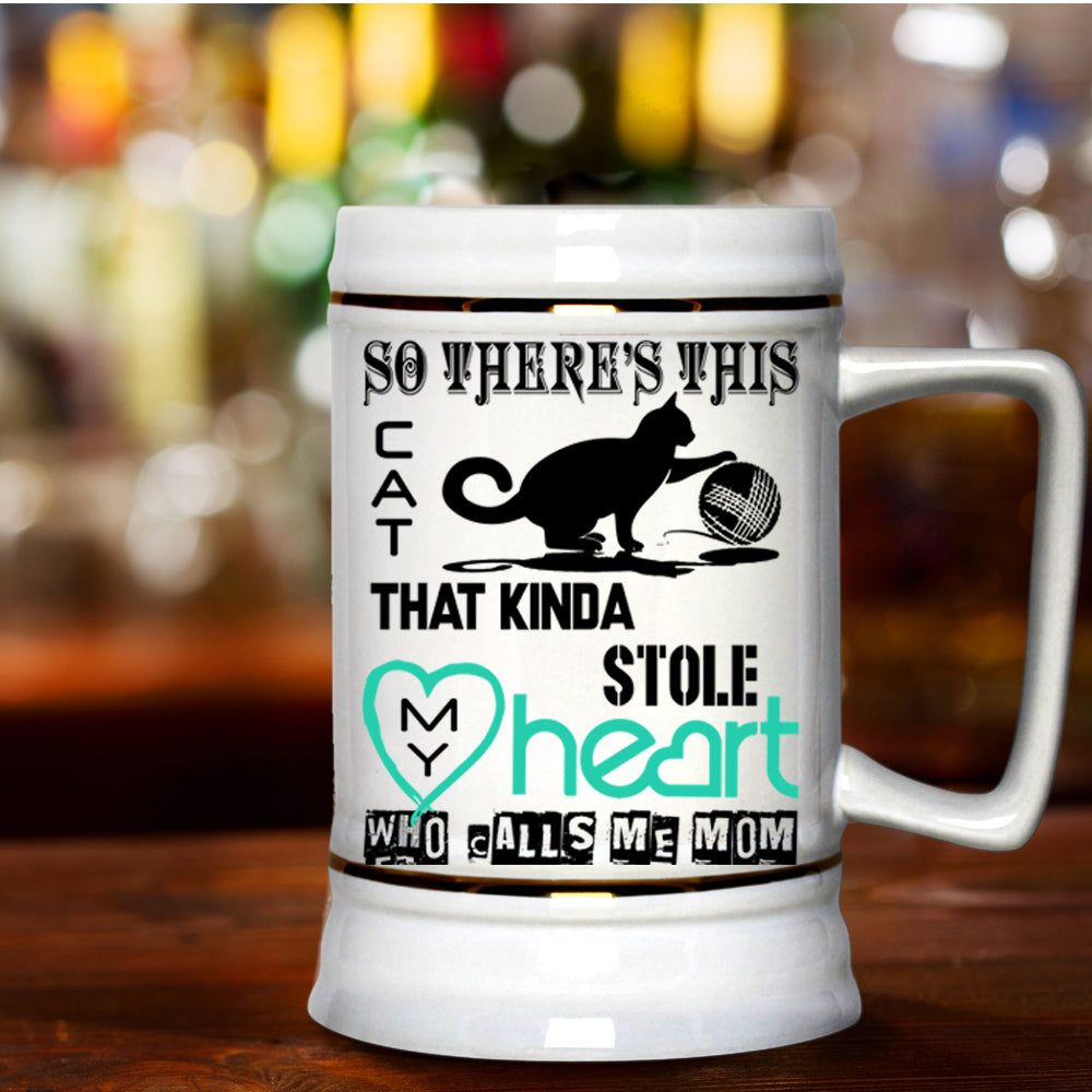 Calls Me Mom Beer Stein 22oz, This Cat Kinda Stole My Heart Beer Mug