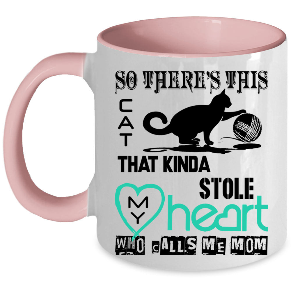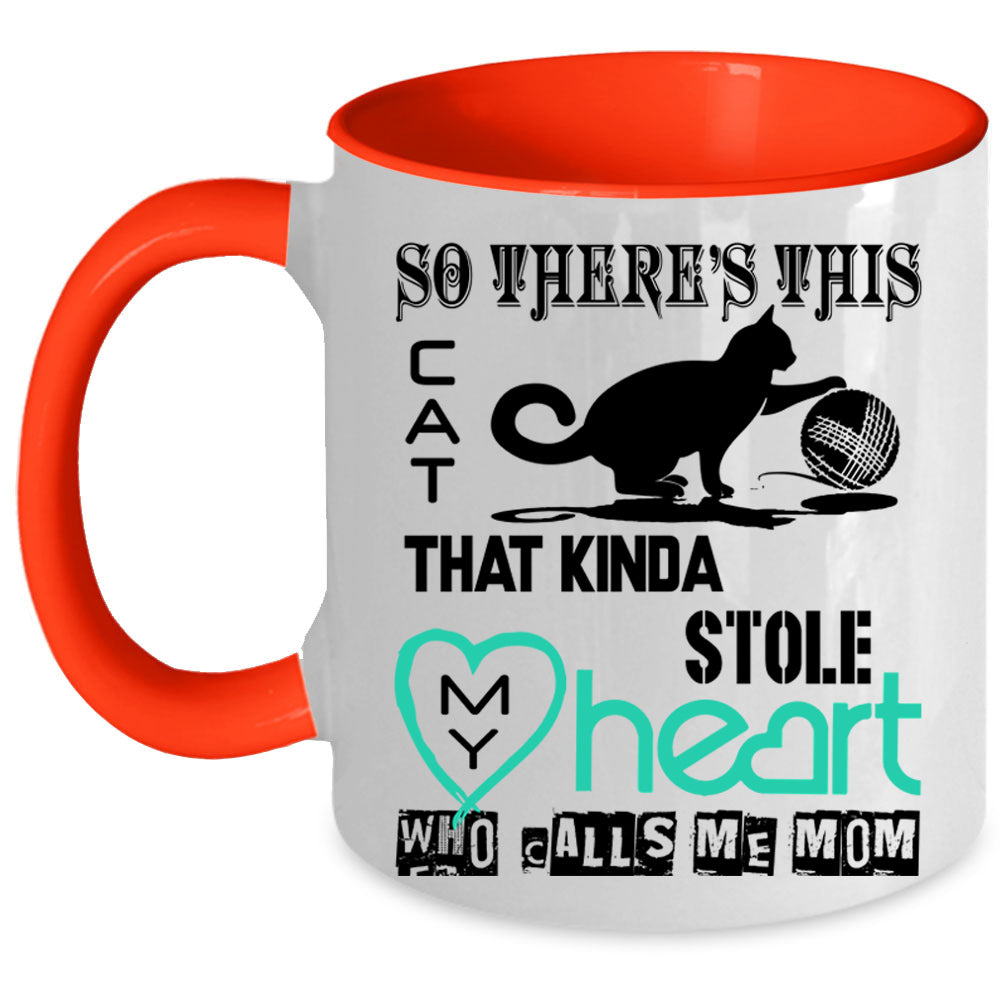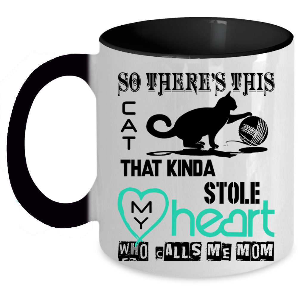 Calls Me Mom Coffee Mug, This Cat Kinda Stole My Heart Accent Mug