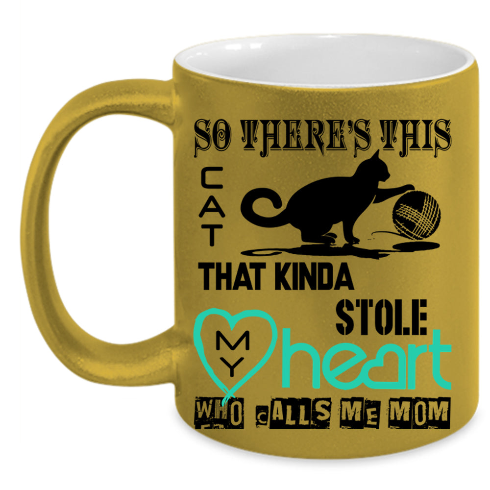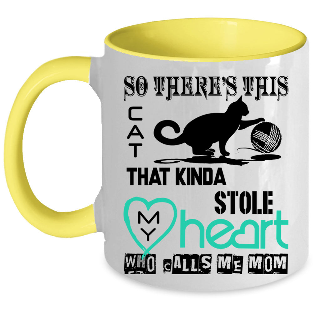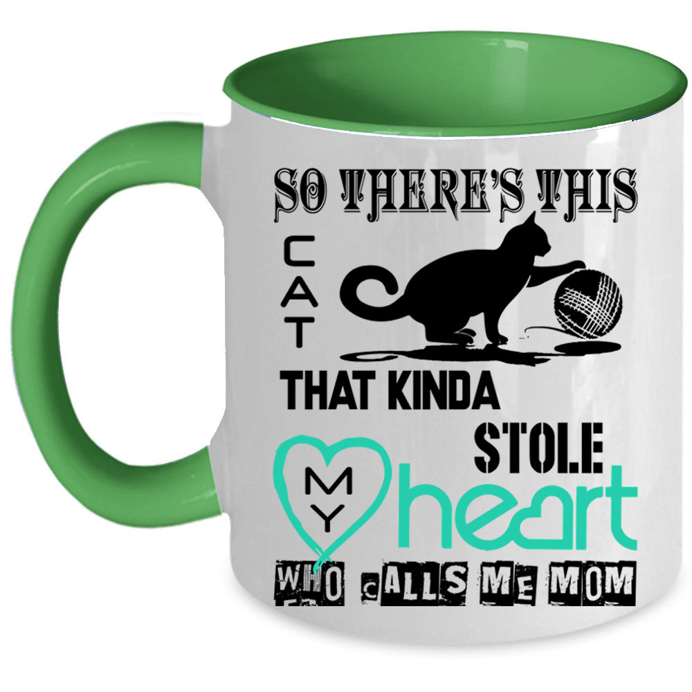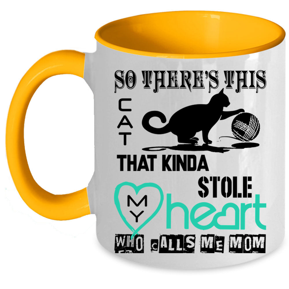 Calls Me Mom Coffee Mug, This Cat Kinda Stole My Heart Accent Mug