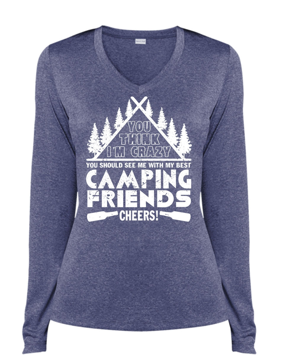 Camping Friends Cheers T Shirt, Being A Camper T Shirt, Cool Shirt (Ladies LS Heather V-Neck)