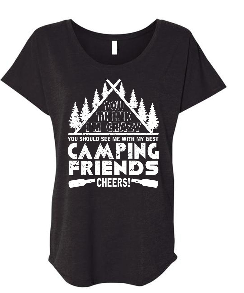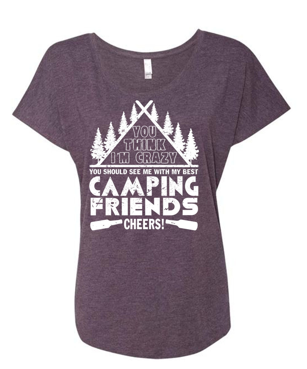 Camping Friends Cheers T Shirt, Being A Camper T Shirt, Cool Shirt (Ladies' Triblend Dolman Sleeve)