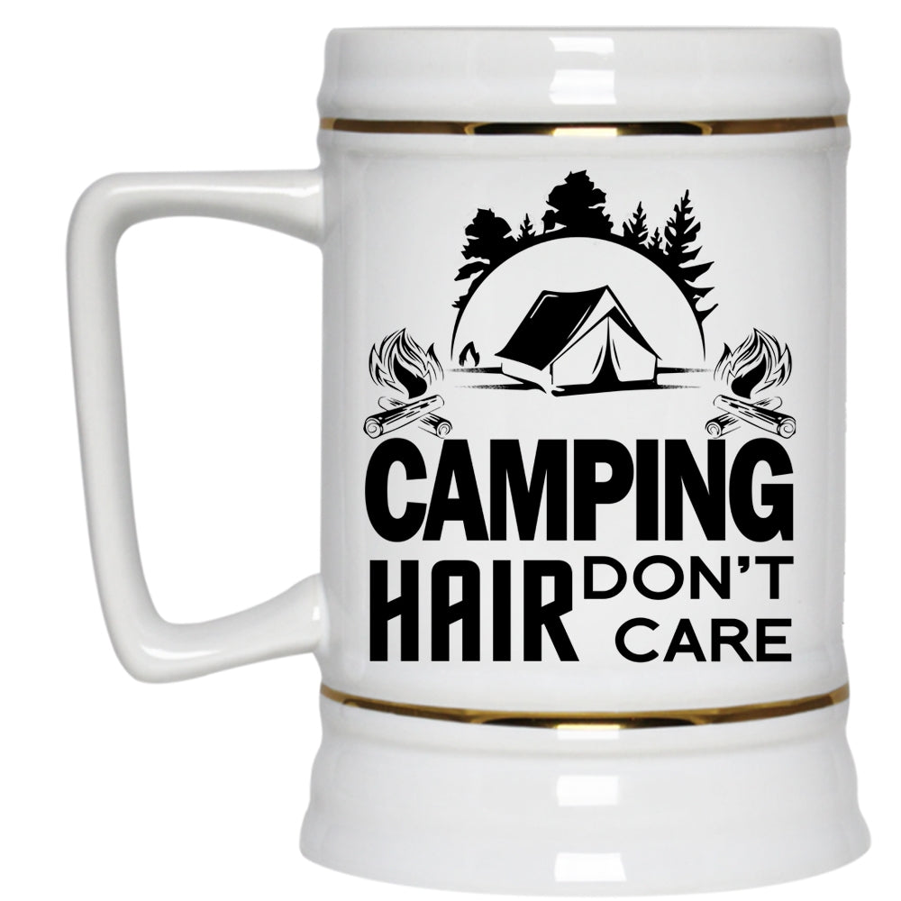 Camping Hair Don't Care Mug, Funny Camper Cup (Beer Mug)