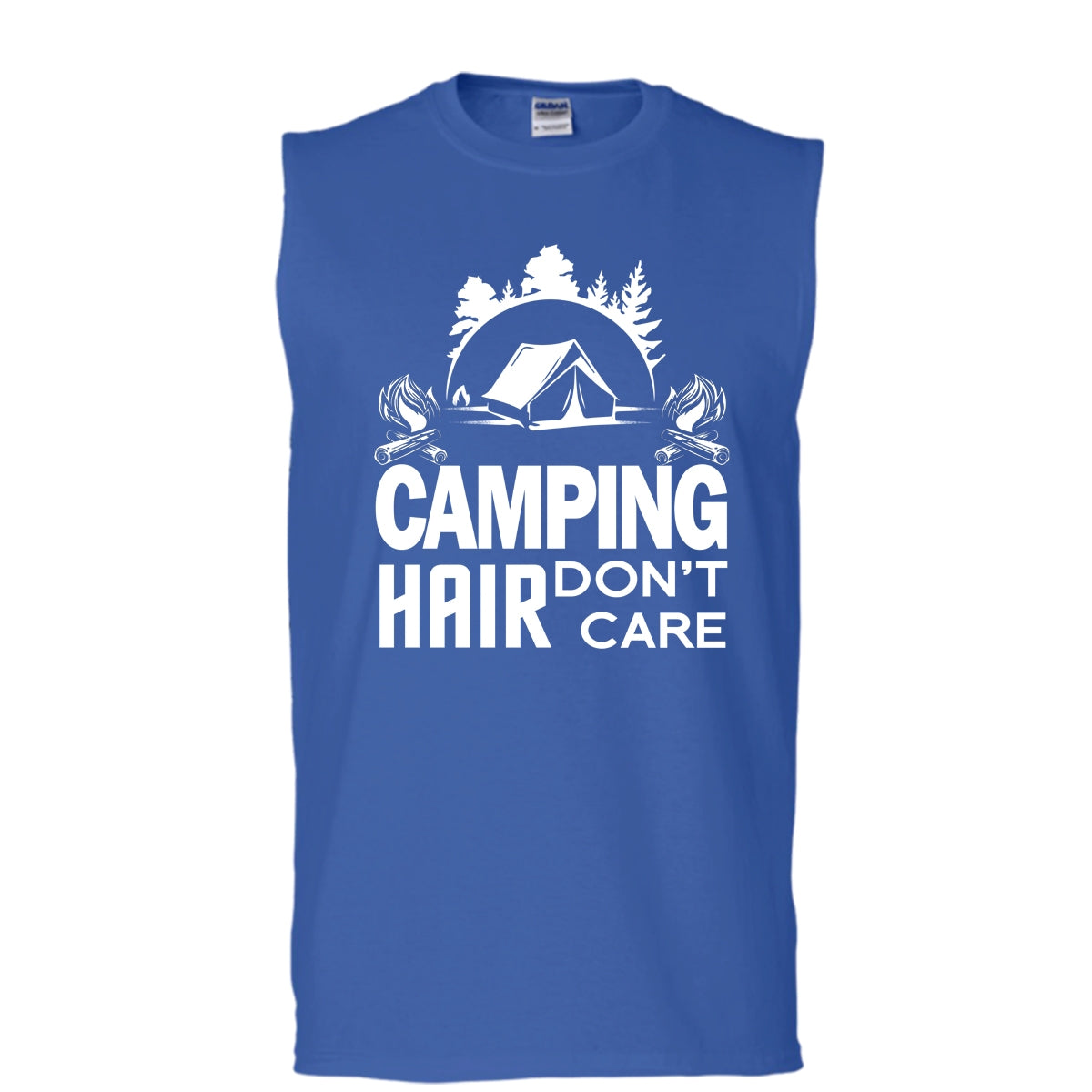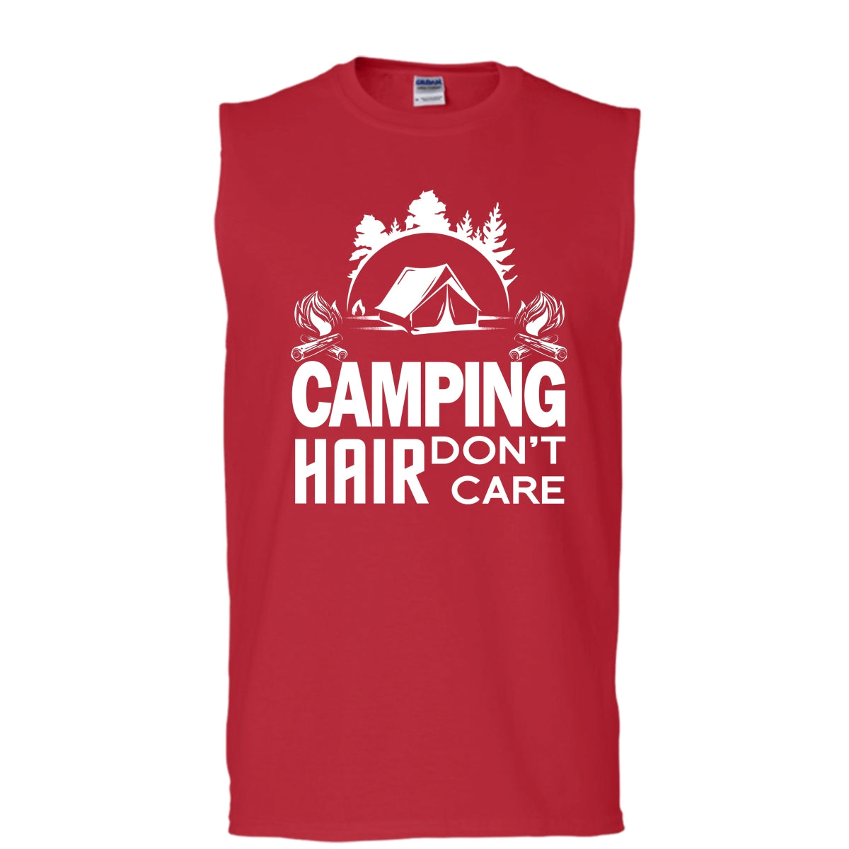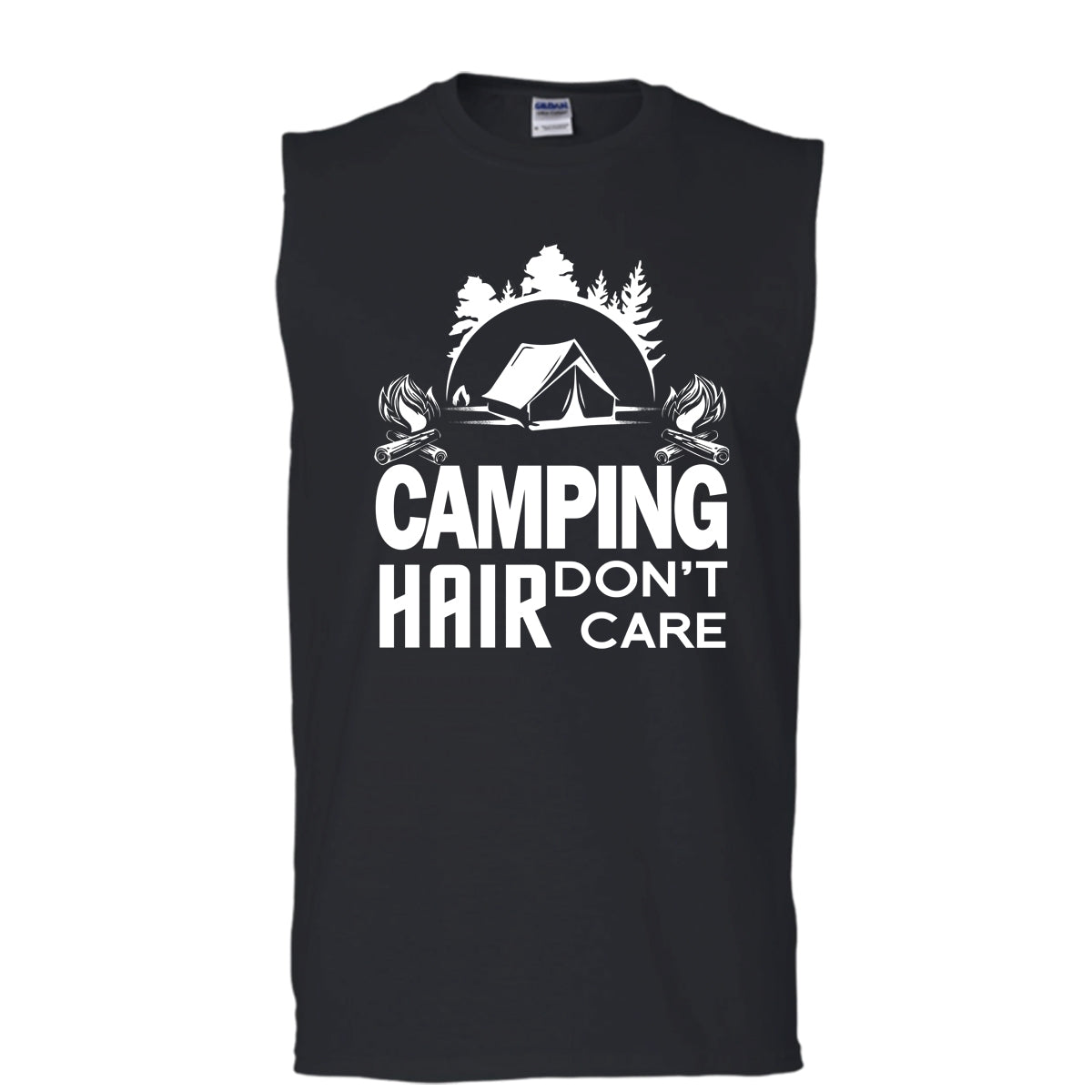 Camping Hair Don't Care Shirt, Cool Camping Shirt (Men's Cotton Sleeveless)