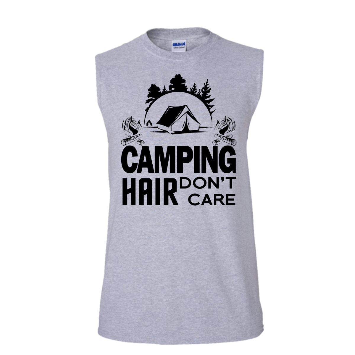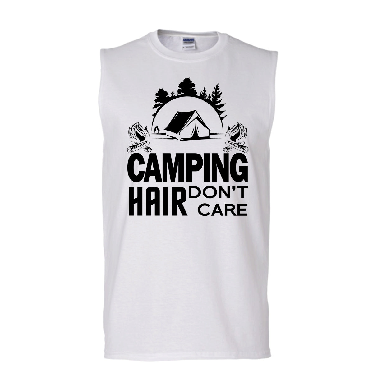 Camping Hair Don't Care Shirt, Funny Camping Shirt (Men's Cotton Sleeveless)