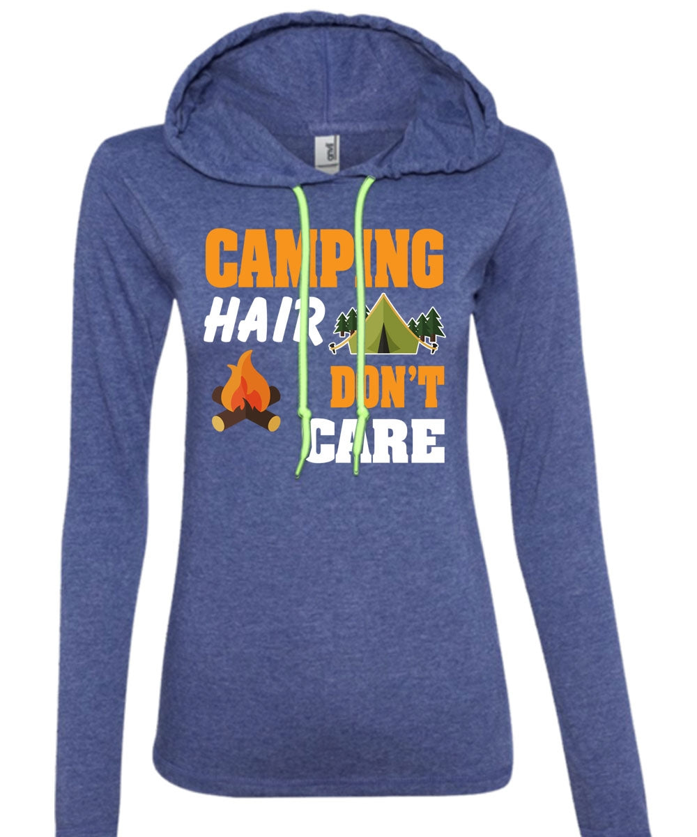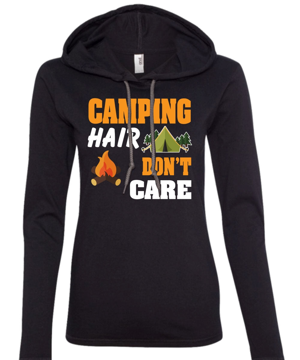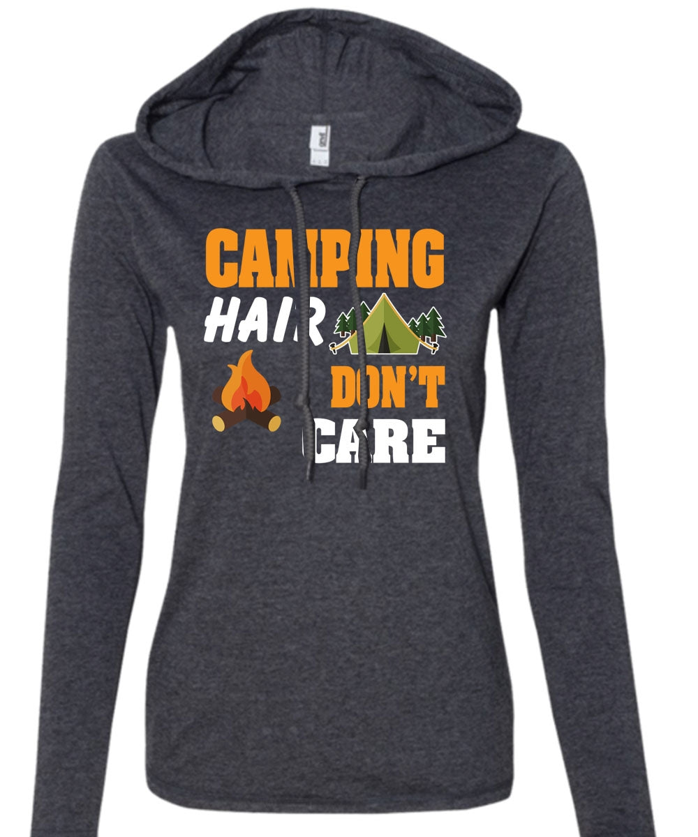 Camping Hair Don't Care T Shirt, Favorite T Shirt, I Love Hair Stylist T Shirt (Anvil Ladies Ringspun Hooded)