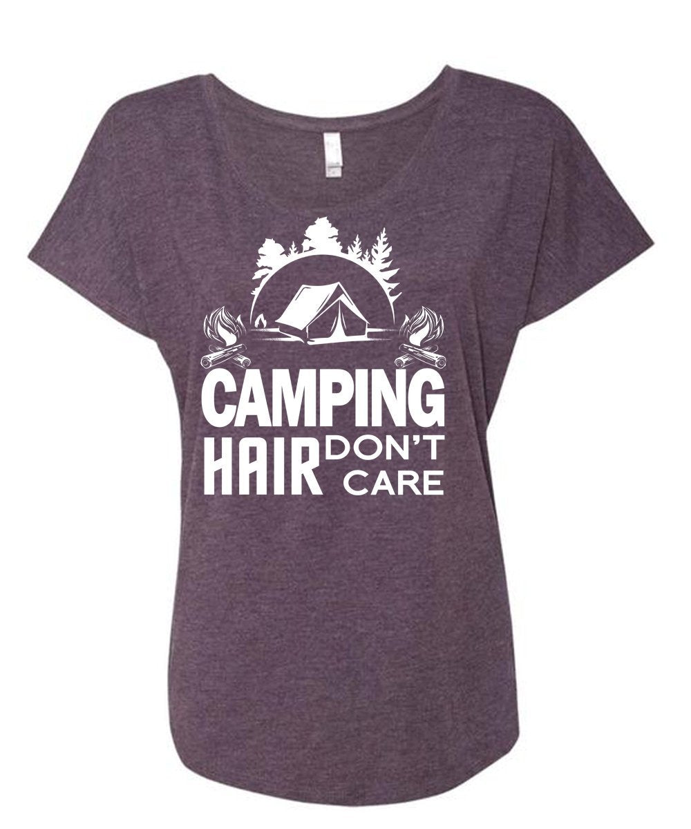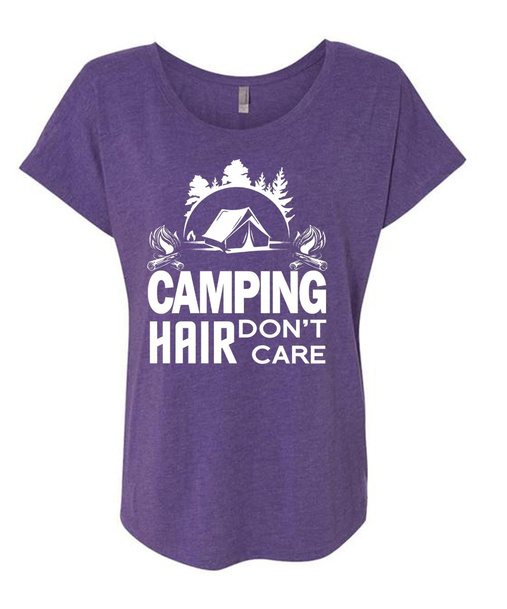 Camping Hair Don't Care T Shirt, Travel T Shirt, Hair Stylist T Shirt (Ladies' Triblend Dolman Sleeve)