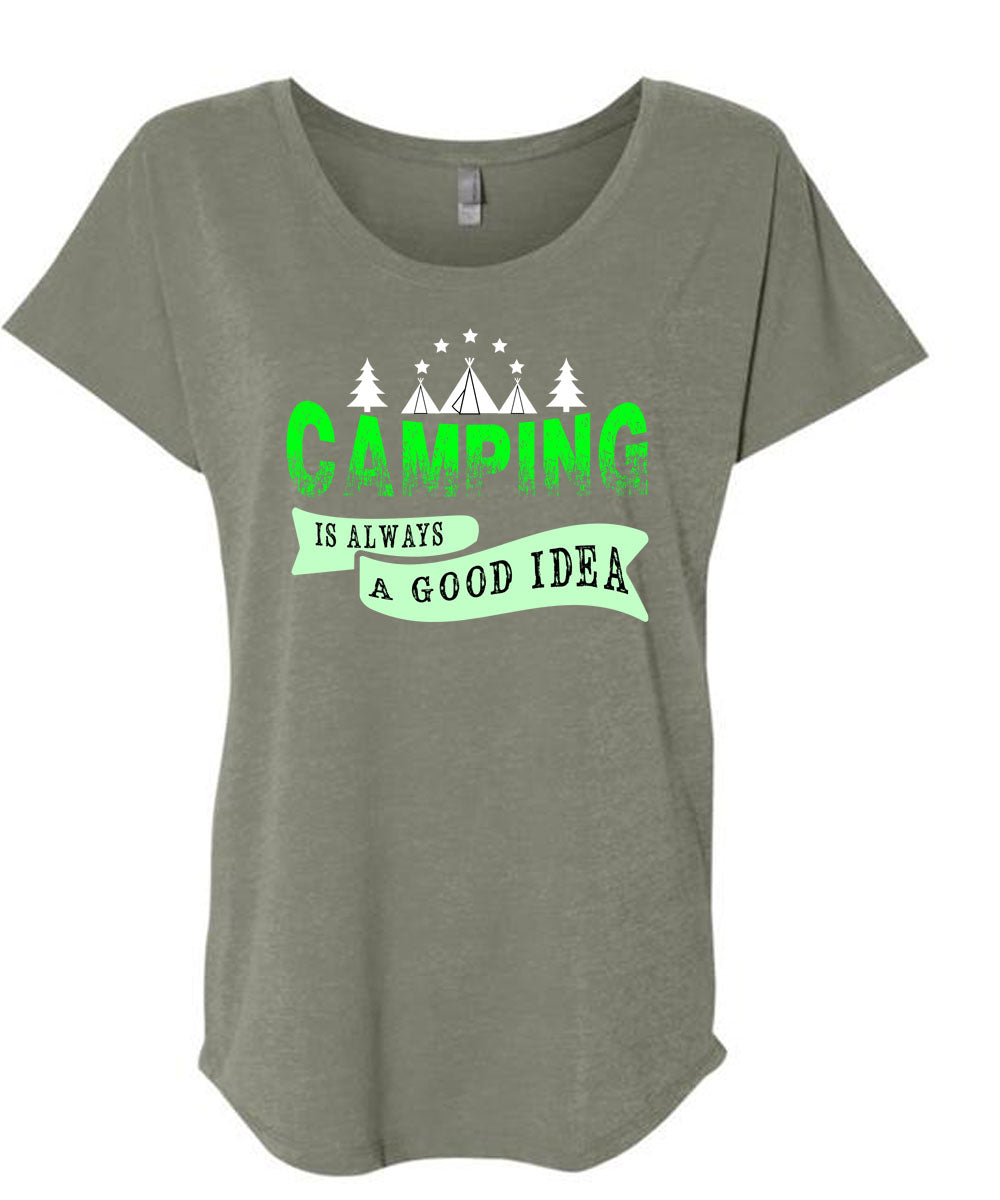 Camping Is Always A Good Idea T Shirt, Being A Camper T Shirt, Cool Shirt (Ladies' Triblend Dolman Sleeve)