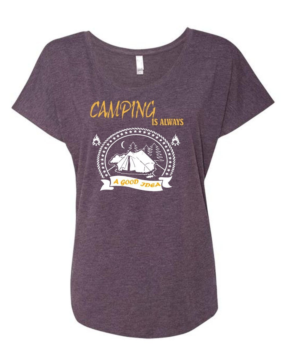 Camping Is Always A Good Idea T Shirt, I Love My Life T Shirt (Ladies' Triblend Dolman Sleeve)