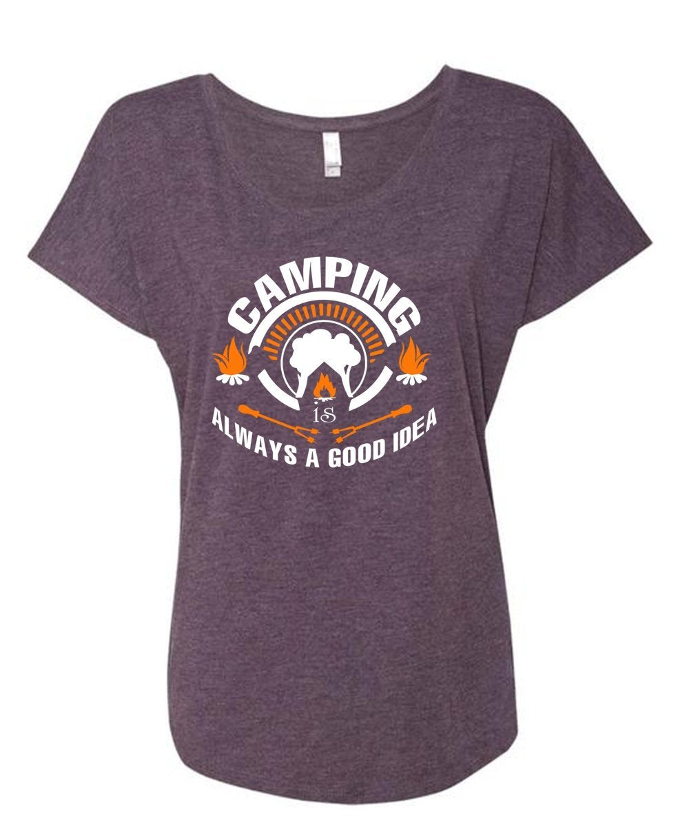 Camping Is Always A Good Idea T Shirt, Travel T Shirt (Ladies' Triblend Dolman Sleeve)