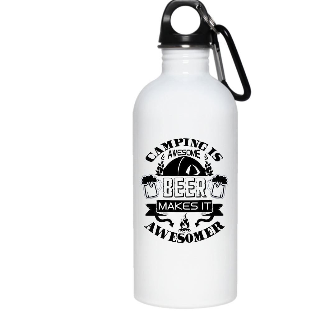Camping Is Awesome 20 oz Stainless Steel Bottle,Beer Makes It Awesomer Outdoor Sports Water Bottle