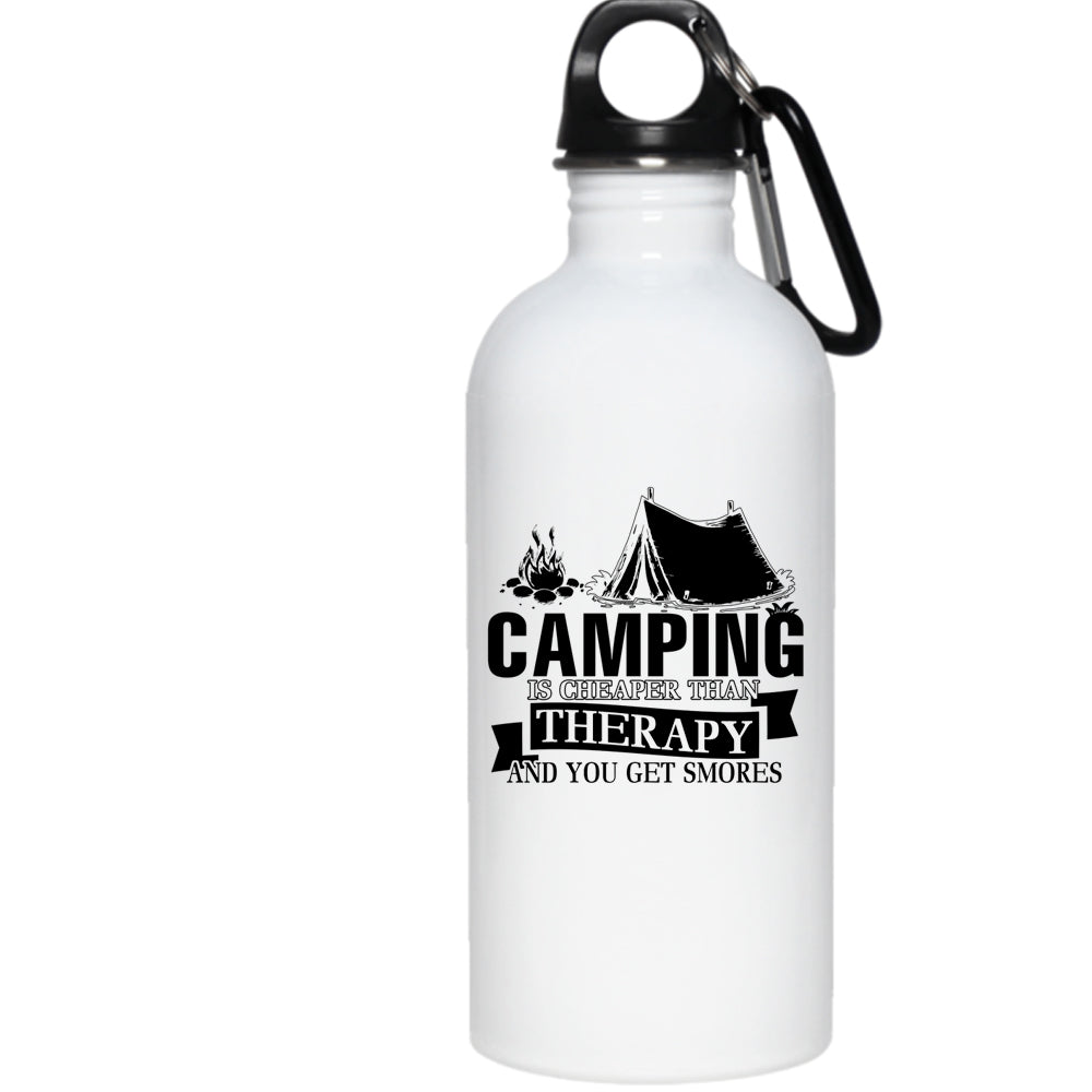 Camping Is Cheaper Than Therapy 20 oz Stainless Steel Bottle,Funny Outdoor Outdoor Sports Water Bottle