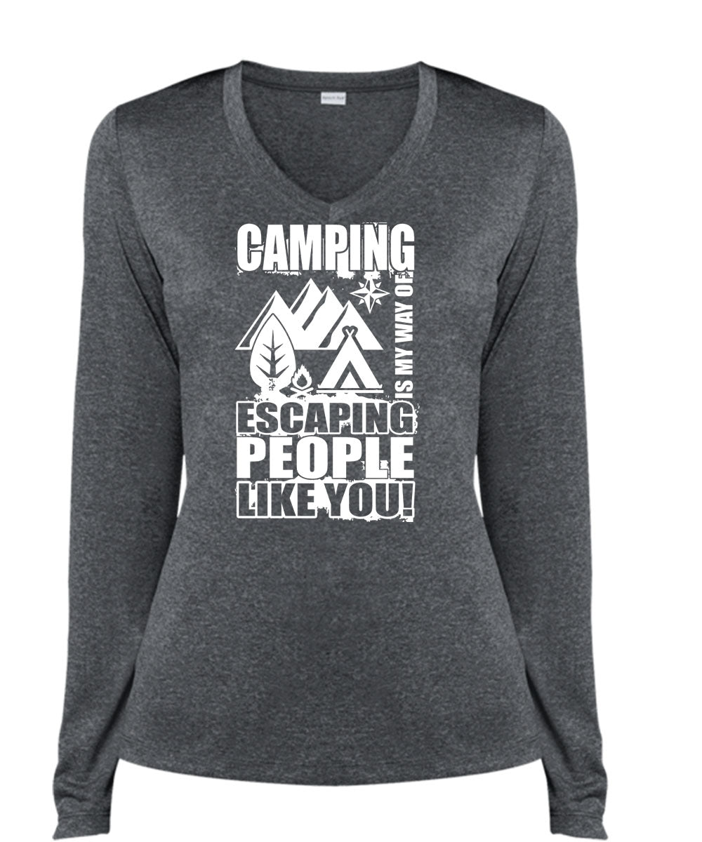 Camping Is My Way Of Escaping T Shirt, Being A Camper T Shirt, Cool Shirt (Ladies LS Heather V-Neck)