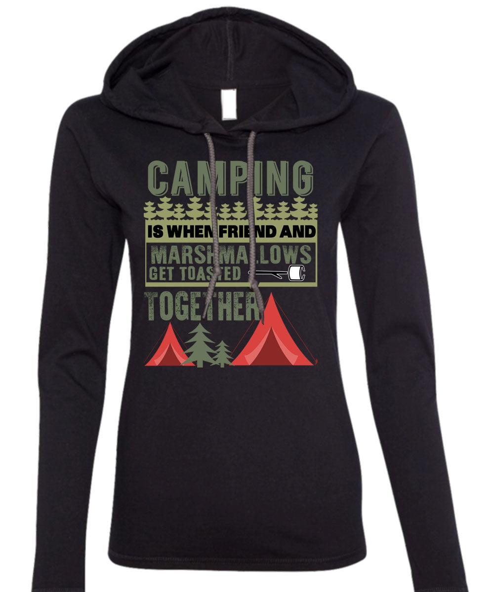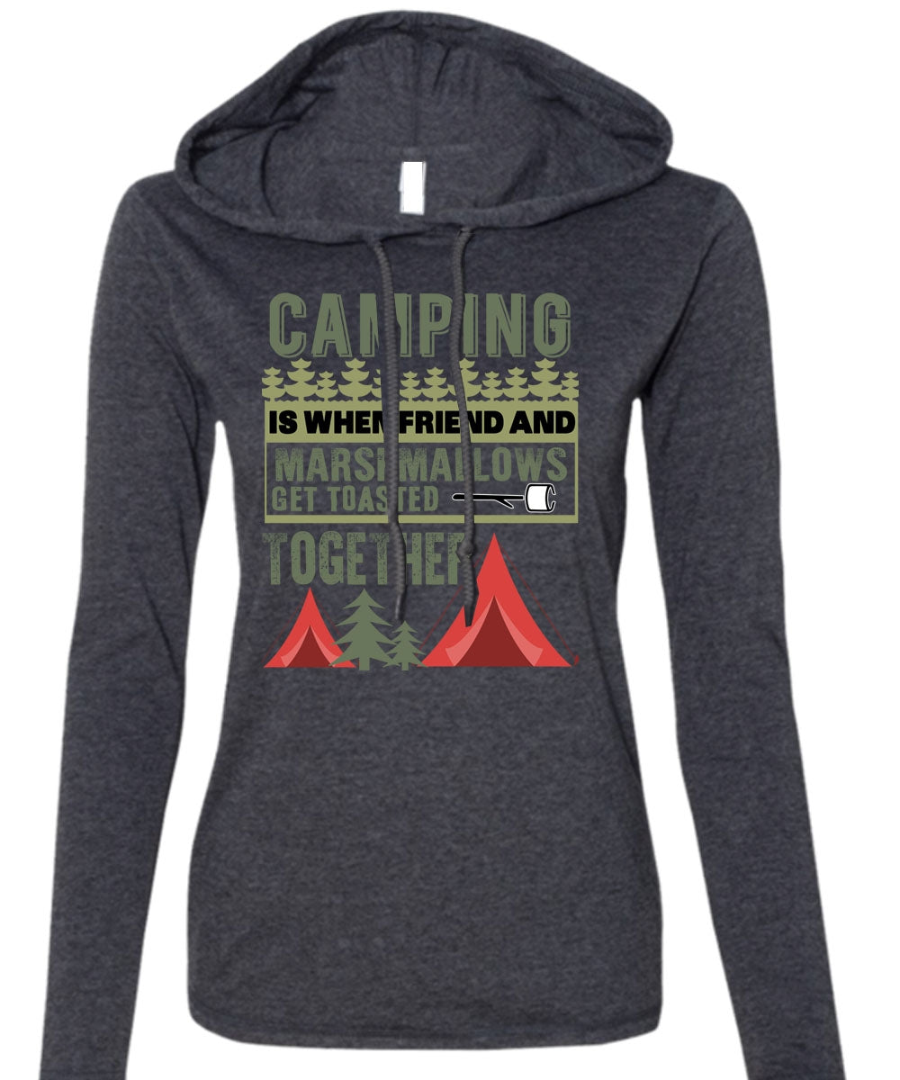 Camping Is When Friend And Marshmallows T Shirt, Being A Camper T Shirt (Anvil Ladies Ringspun Hooded)