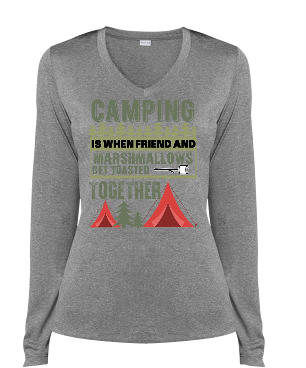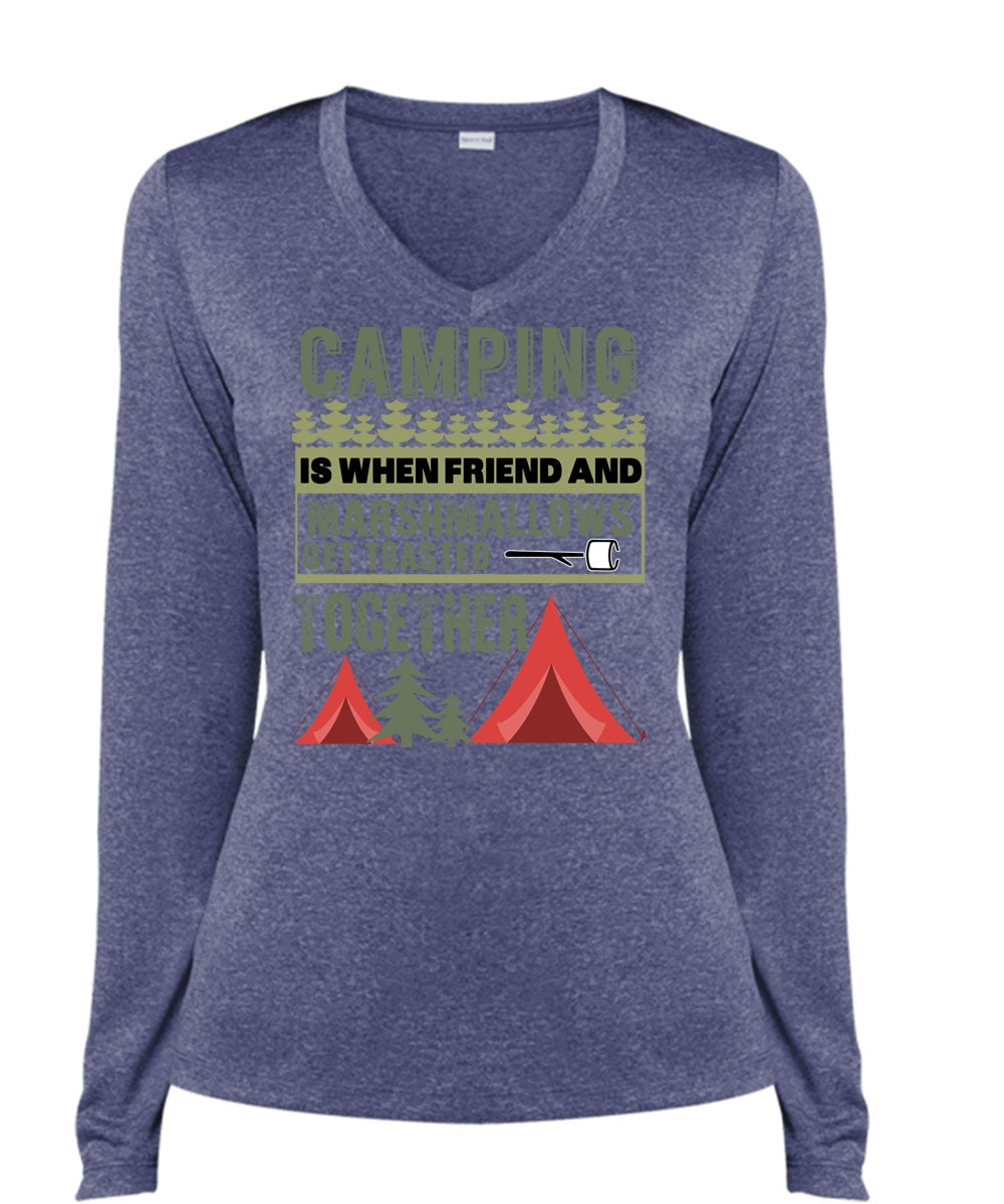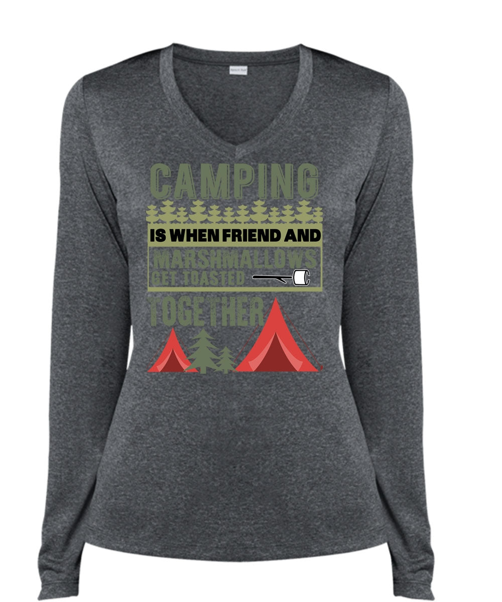 Camping Is When Friend And Marshmallows T Shirt, Being A Camper T Shirt, Cool Shirt (Ladies LS Heather V-Neck)