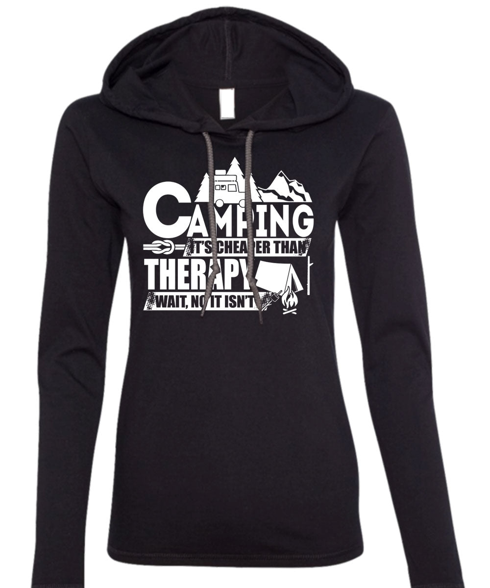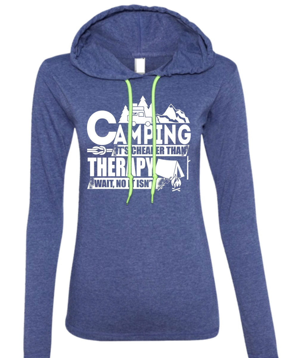 Camping It's Cheaper Than Therapy T Shirt, I Love Camping T Shirt (Anvil Ladies Ringspun Hooded)