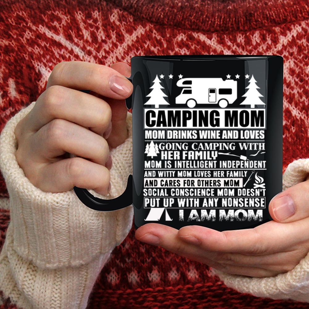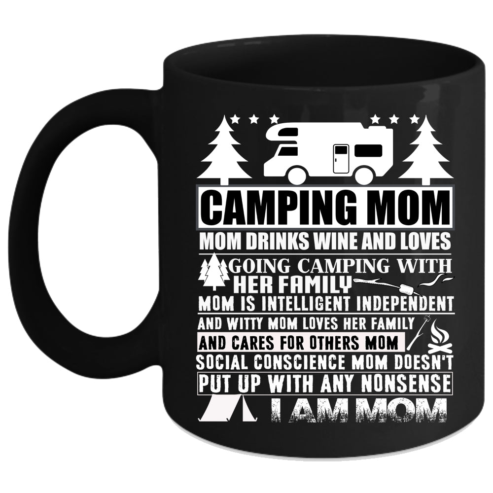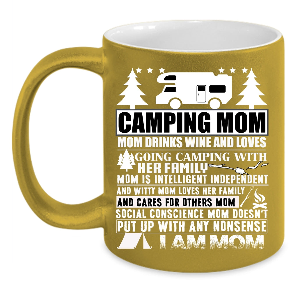 Camping Mom Coffee Mug, Mom Drinks Wine And Love Camping Coffee Cup