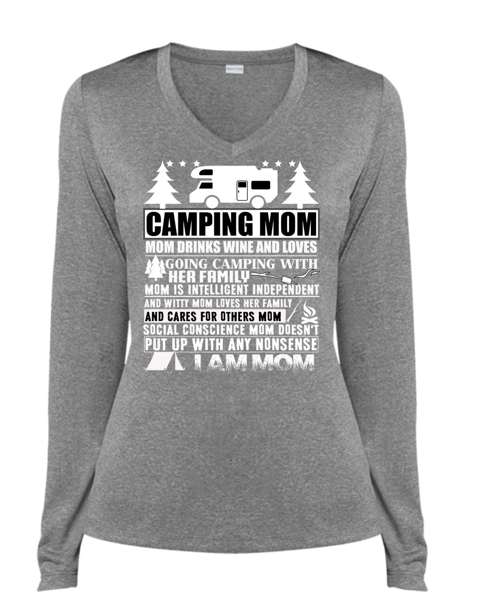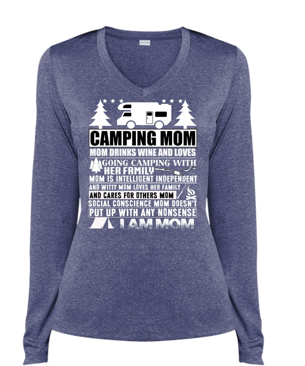 Camping Mom T Shirt, I Am A Mom T Shirt, Cool Shirt (Ladies LS Heather V-Neck)
