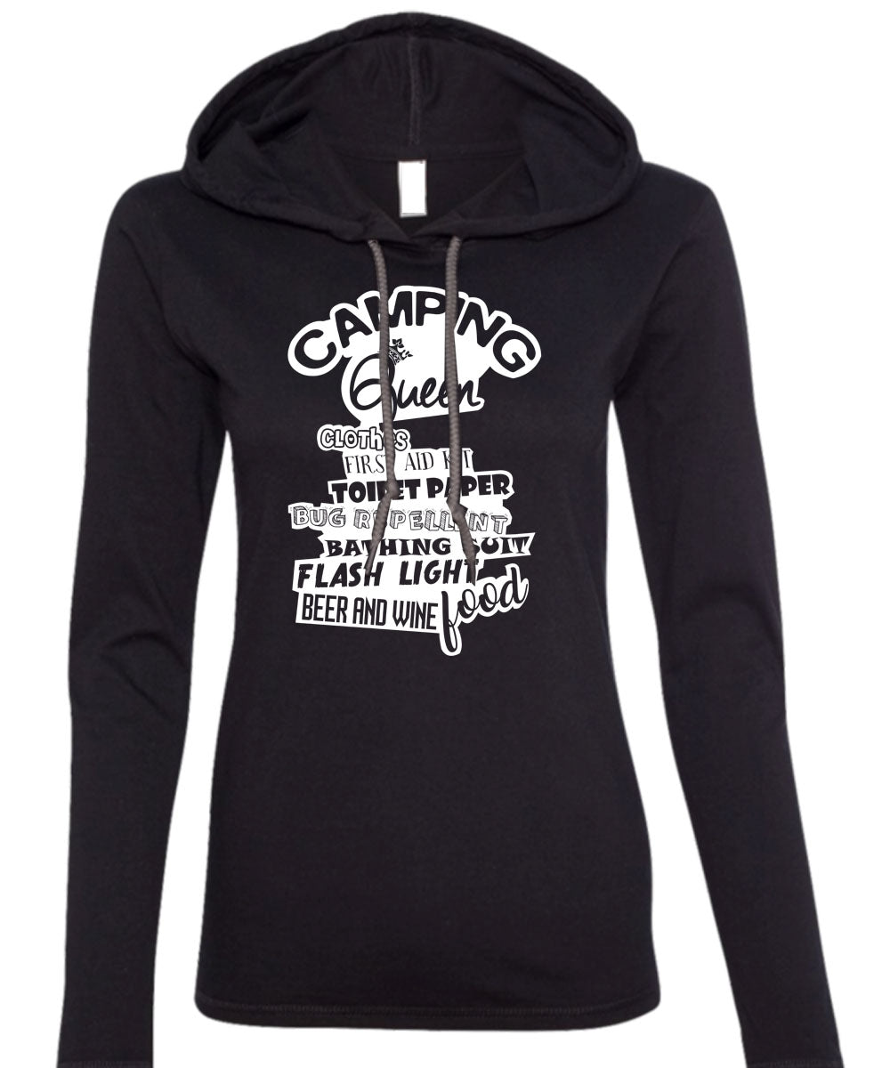Camping Queen Clothes T Shirt, Beer And Wine T Shirt (Anvil Ladies Ringspun Hooded)